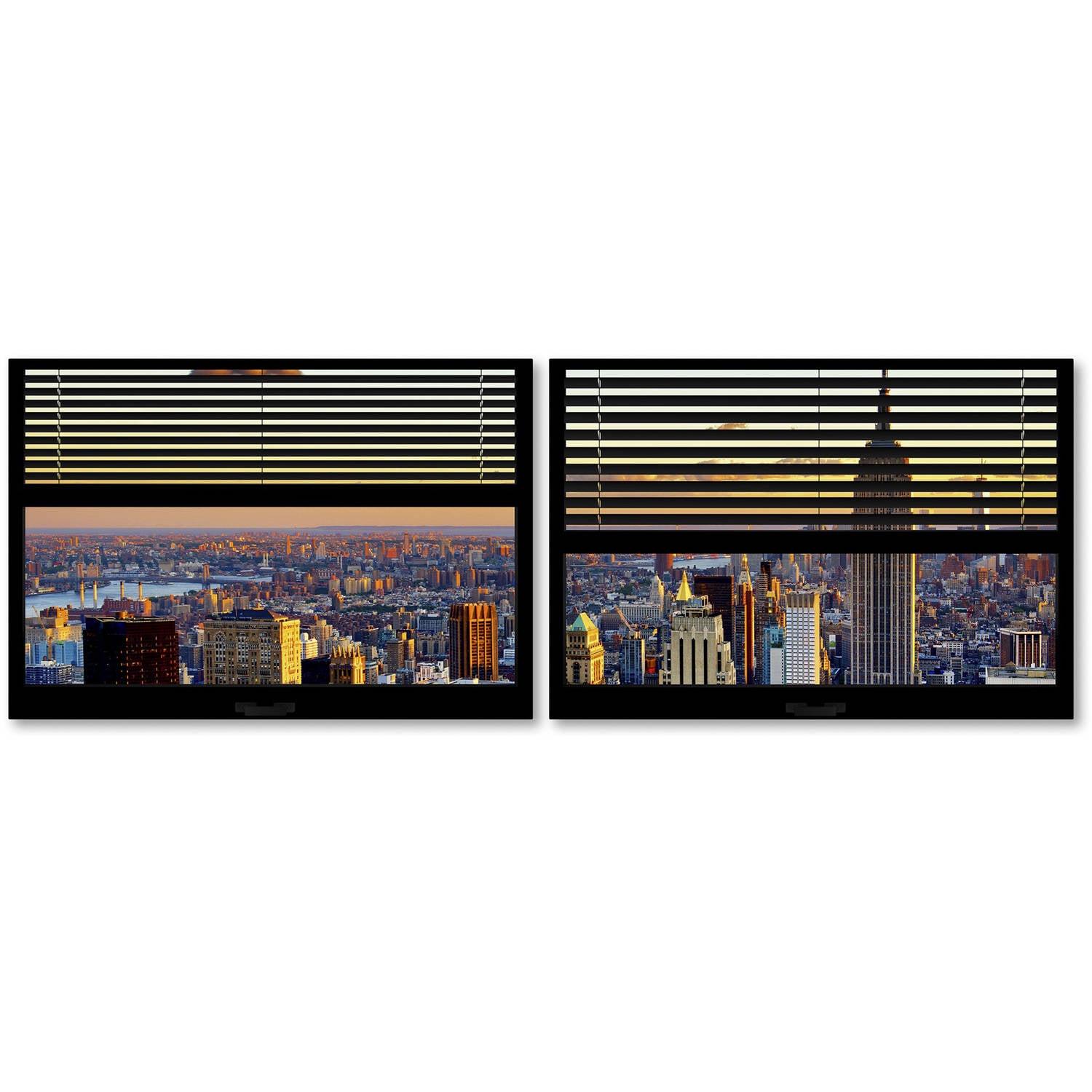 Trademark Fine Art Landscapes 2 Panel Art Set ‘ Window View NYC Sunset 4 ‘ by Philippe Hugonnard