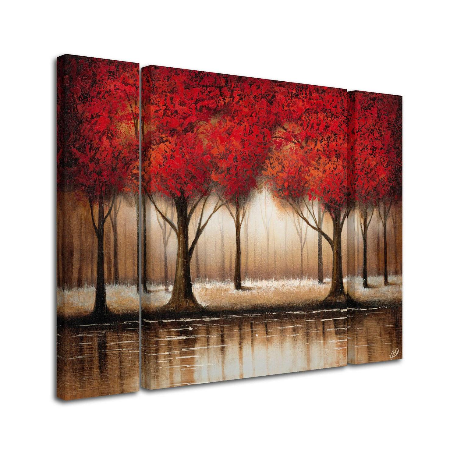 Trademark Fine Art “Parade of Red Trees” Canvas Art by Rio Three Panel Set: