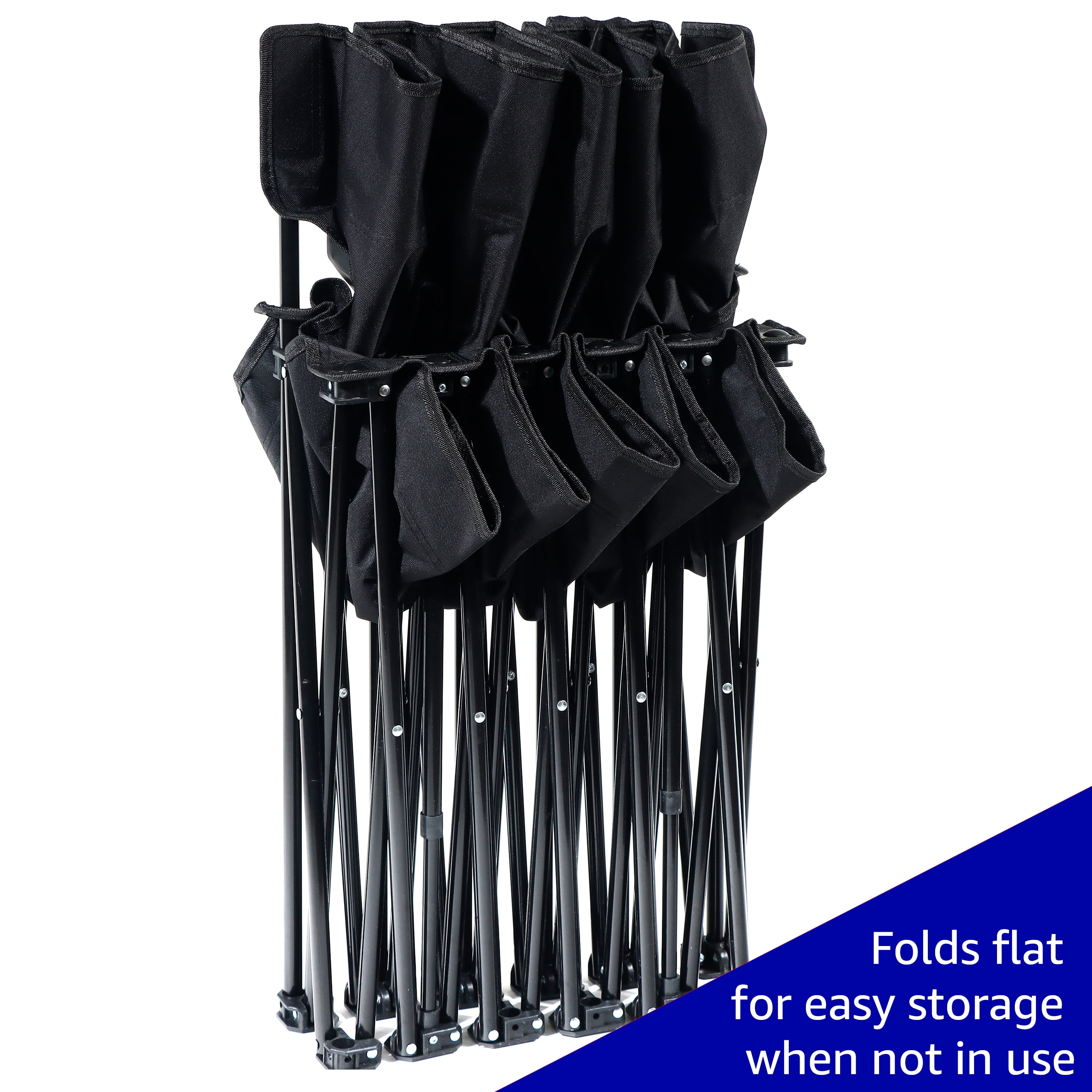 This strong, durable, and lightweight portable five-person steel frame folding bench with a back is perfect for sitting on the sidelines at a sports event, tailgating, a party, camping in the outdoors, or wherever. Highly portable and lightweight makes this the ultimate collapsible bench. There is no assembly required, just unpack and it is ready for use. Item measures 77 inches long, 18 inches across, and 18 inches high when set up.