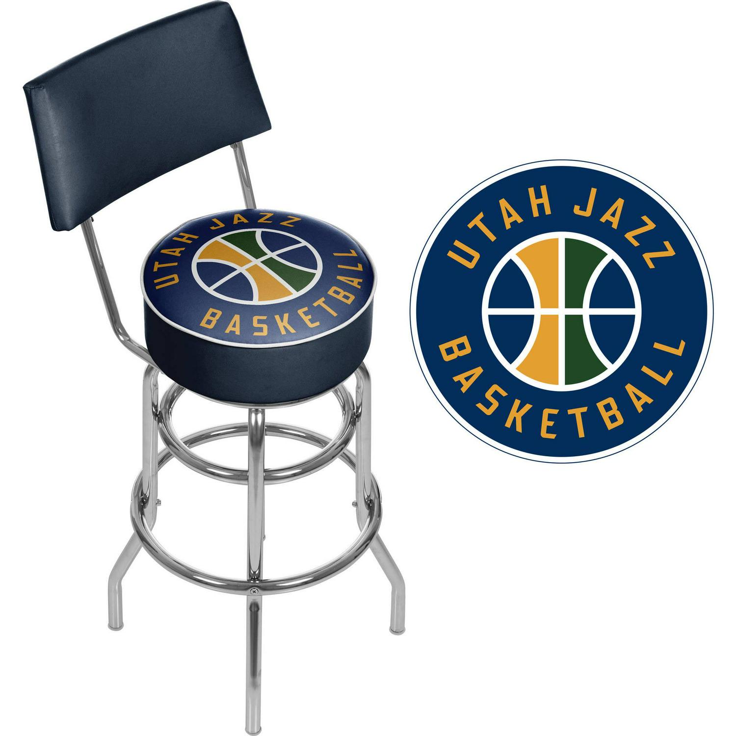 Trademark NBA Utah Jazz 40 Padded Swivel Bar Stool with Back, Chrome