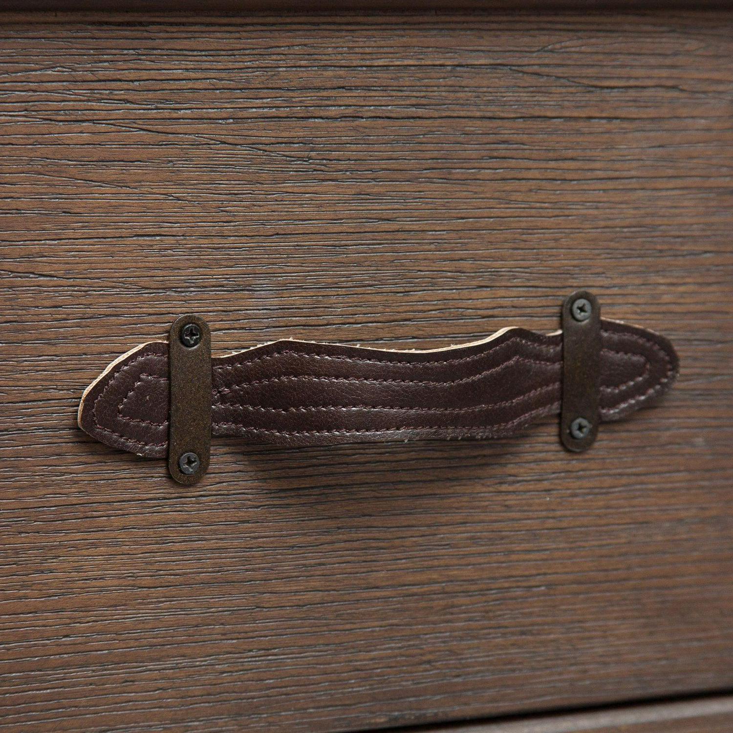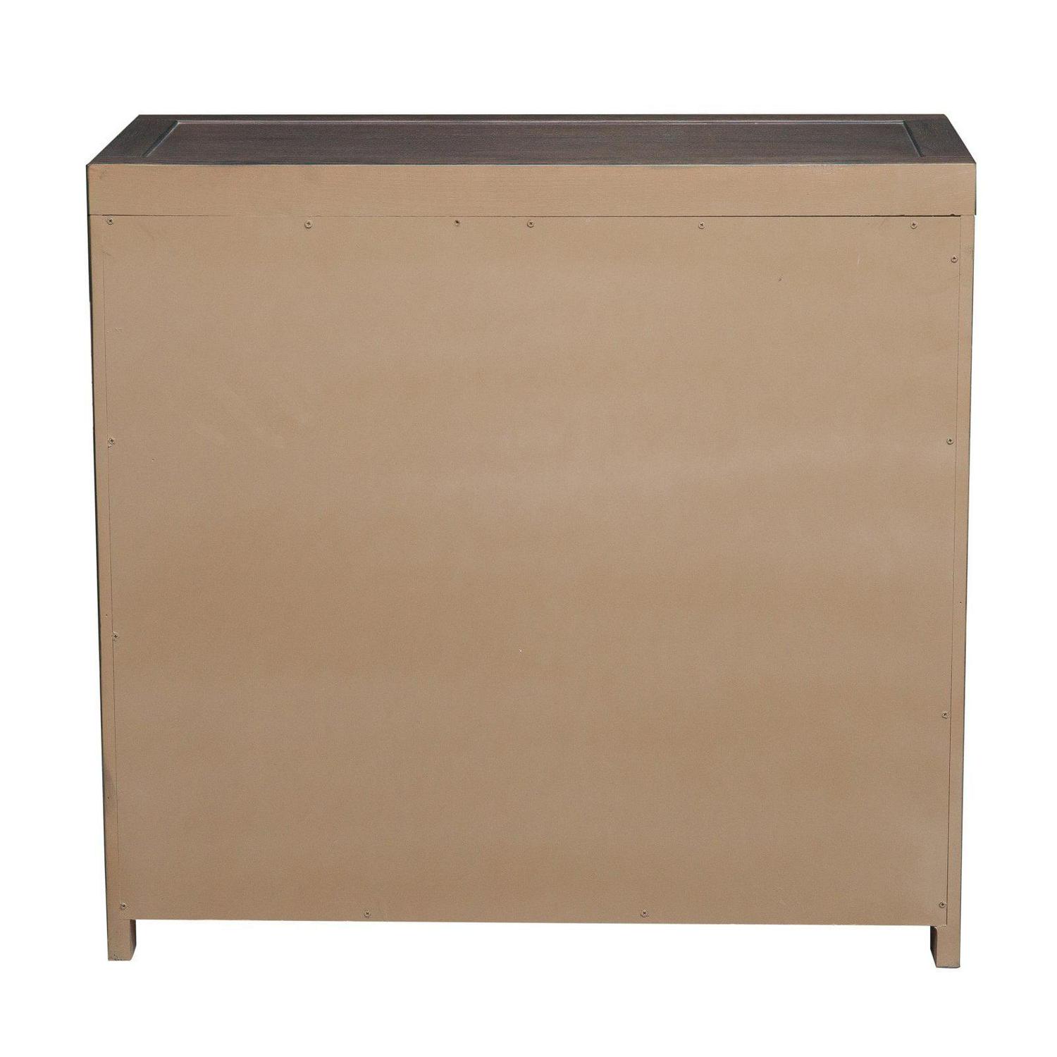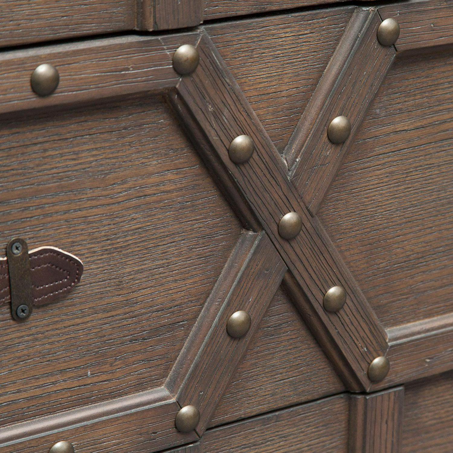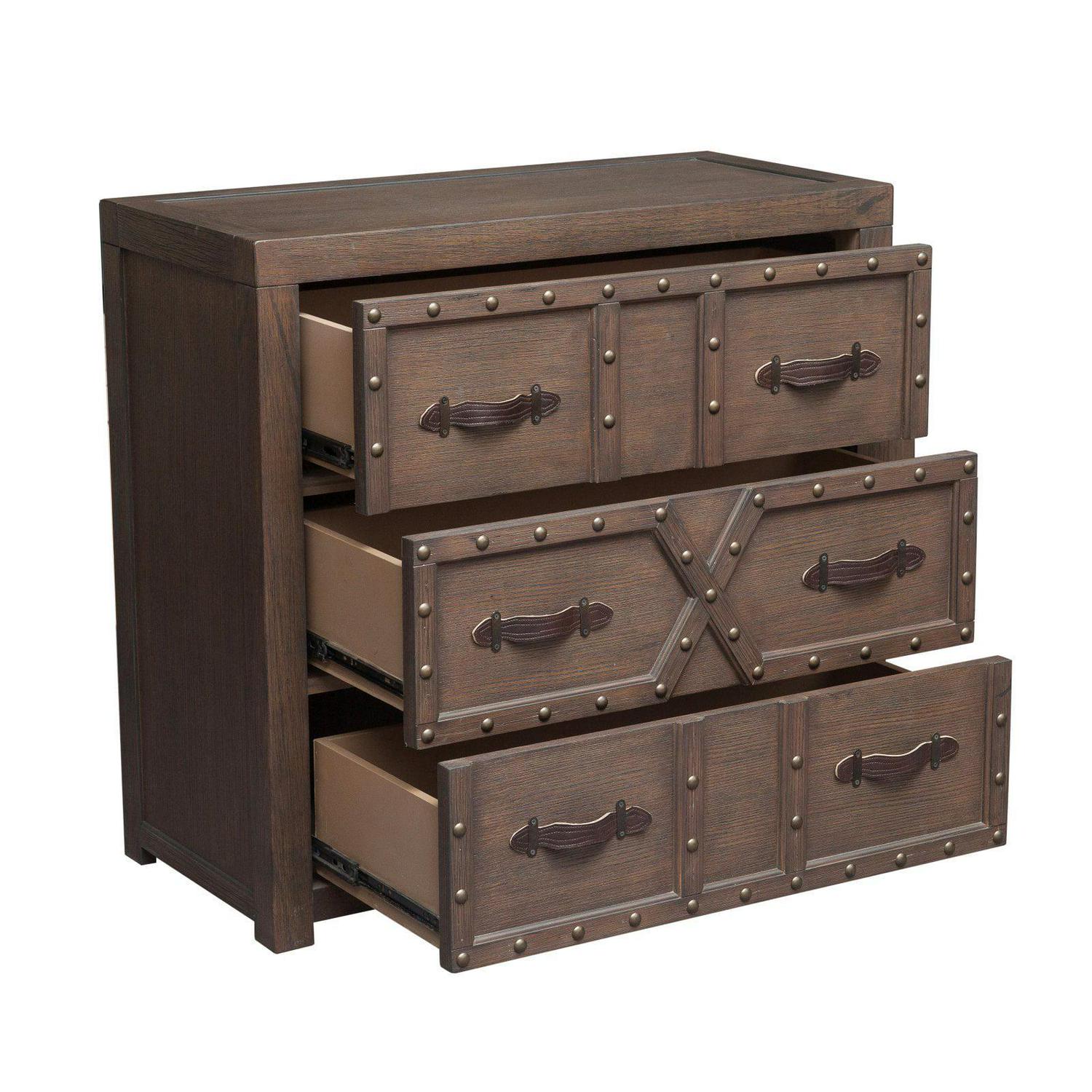 Three drawers. Traditional and industrial style. Weight capacity: 100 lbs.. Made from hardwood solids, acacia veneers and resin. Brown finish. Made in Vietnam. No assembly required. 34.02 in. W x 15.98 in. D x 31.97 in. H (94.77 lbs.). What a find! You might have discovered this chest in an old shipping container, a barn or a warehouse. It definitely has a story to tell but well leave the details of that to you and focus here on its great features.