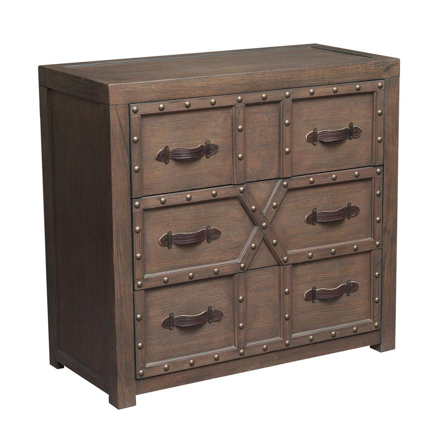 Traditional Styled Three Drawer Nail Head Accent Chest with Industrial Influence