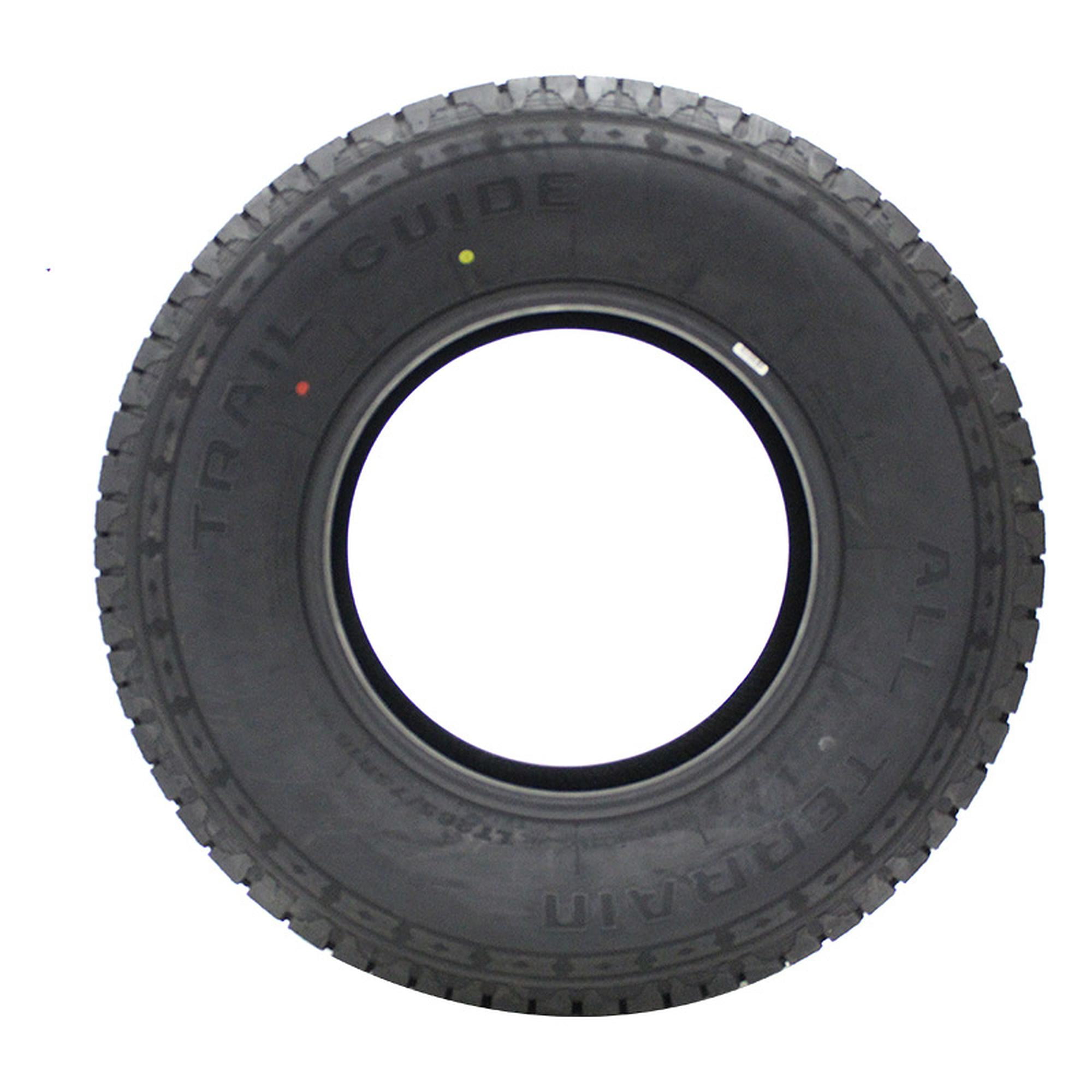 Attention! Due to the size of the tires, Packages might be SEPARATED in the courier facility and not be DELIVERED on the SAME DAY, even though we do ship them together. Tracking information can be checked by logging on to the courier website with the master tracking number you will receive via email. For example, you can receive 3 tires in one day and the 4th one the next day or the day after, or one tire in one day and the second one day after. We understand that this is a big inconvenience for our buyers, however, this is ABSOLUTELY out of our control. Trail Guide All Terrain FEATURES AND BENEFITS All weather traction All terrain traction Durable controllability OVERVIEW The Trail Guide All Terrain is an all terrain, all season tire manufactured for SUVs and light trucks. Trail Guide offers a 50,000 mile warranty with this tire model. The tire promotes great all weather traction. The tread design and the all season tire compound work together to boost the dry, wet and winter weather road gripping capability. The tread’s optimal pattern with the high density siping and groove detail offers a constantly firm road grip, even in winter weather, while the compound maintains its flexibility throughout the year. The tread’s wide circumferential grooves prevent hydroplaning by dispersing water and slush from below the tire’s footprint. The better hydroplaning resistance and all weather traction upgrade the year round driving safety, in this manner. The tread’s staggered tread elements, wide grooves and open shoulder design, with the detailed siping pattern, enhance the model’s on- and off-road driving capability. In this manner, the tire offers a versatile usability. The tread allows the tire to conquer soft, loose and uneven terrain conditions with ease, while the tread elements find firm grip on all surface terrains. The staggered tread blocks and wide grooves also keep the footprint clean. They eliminate mud and snow and eject rocks stuck between the tread elements. This prevents the tire from being blocked from its contact with the road surface and resists stone retention from harming the tire’s casing. The All Terrain offers excellent controllability and durability. The tread’s constant road contact upgrades the steering responsiveness and driving stability on all terrain surface conditions. In this manner, the steering becomes faster and more precise in its response to the driver’s commands, while the structure is stabilized against the driving pressure affecting the model. The stronger internal structure and reinforced tire compound improve the tire’s load and driving durability, while also preventing off-road damage from shortening the tire’s service life. As a result, the tire is able to carry and withstand heavy loads with ease and it guarantees a secure driving experience in all weather. Manufacturers recommend changing tires every 10 years. As long as tires are properly stored before they are sold, the year of their manufacture will not shorten their service life.