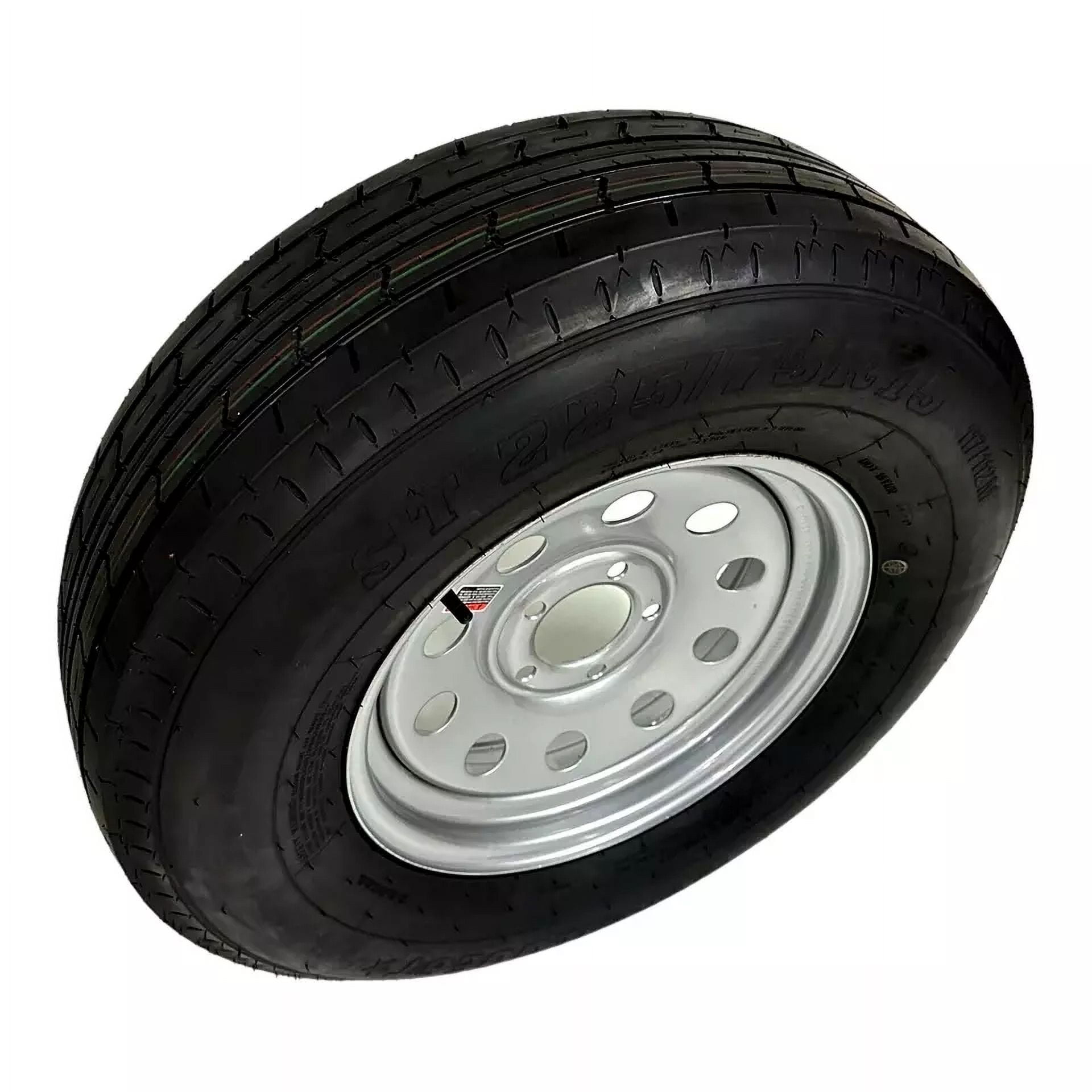 Trailer Tire on Rim ST225/75R15 TrailQuest LRE Radial 10 Ply 5 Lug Silver Modular Wheel 5X4.5″ Bolt Pattern