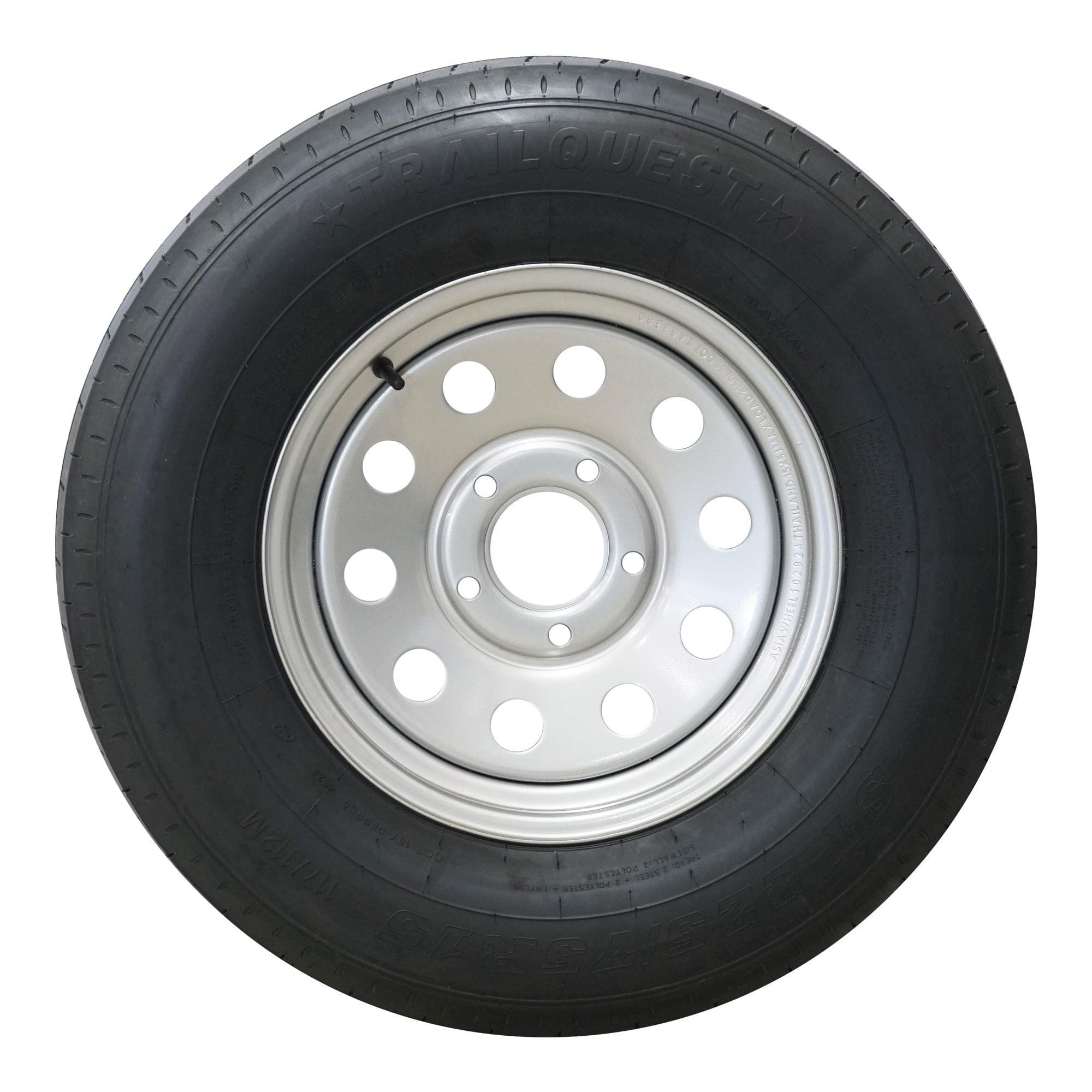 Trailquest 15″ 10 ply Radial Trailer Tire & Wheel – ST 225/75R15 5 Lug (Silver Mod), 5×4.5 Bolt Pattern