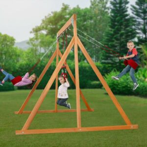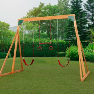 – The Trailside Wooden Swingset can be easily setup in one afternoon. All wood, hardware, accessories, and instructions are included for assembly