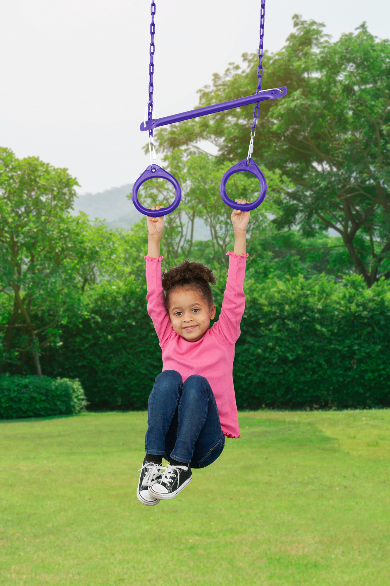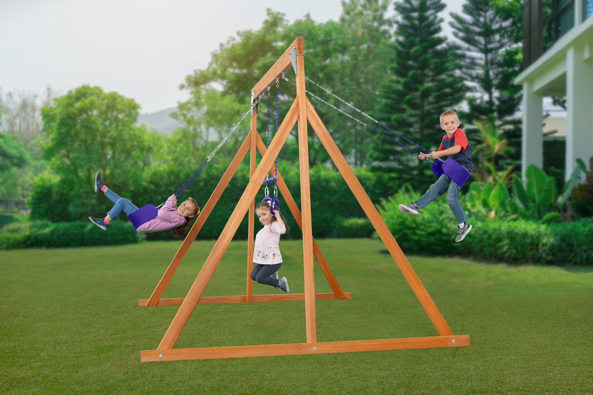 The Trailside Wooden Swing Set by Creative Cedar Designs is ideal for the family with a small backyard, with HOA restrictions on Swingset heights, or for those who just want a simple, easy to assemble 3-position Swing Set! Made from quality wood, hardware, and accessories, and engineered to ASTM Safety Standards, once assembled you’ll have peace of mind for years to come. This Ready to Assemble swing set kit includes two swings, one trapeze, and all wood and hardware required for assembly. This Wooden Swing Set is intended for 3-12-year-old children in a Residential setting only. Choose from 7 vibrant color options to customize with your child’s favorite colors!