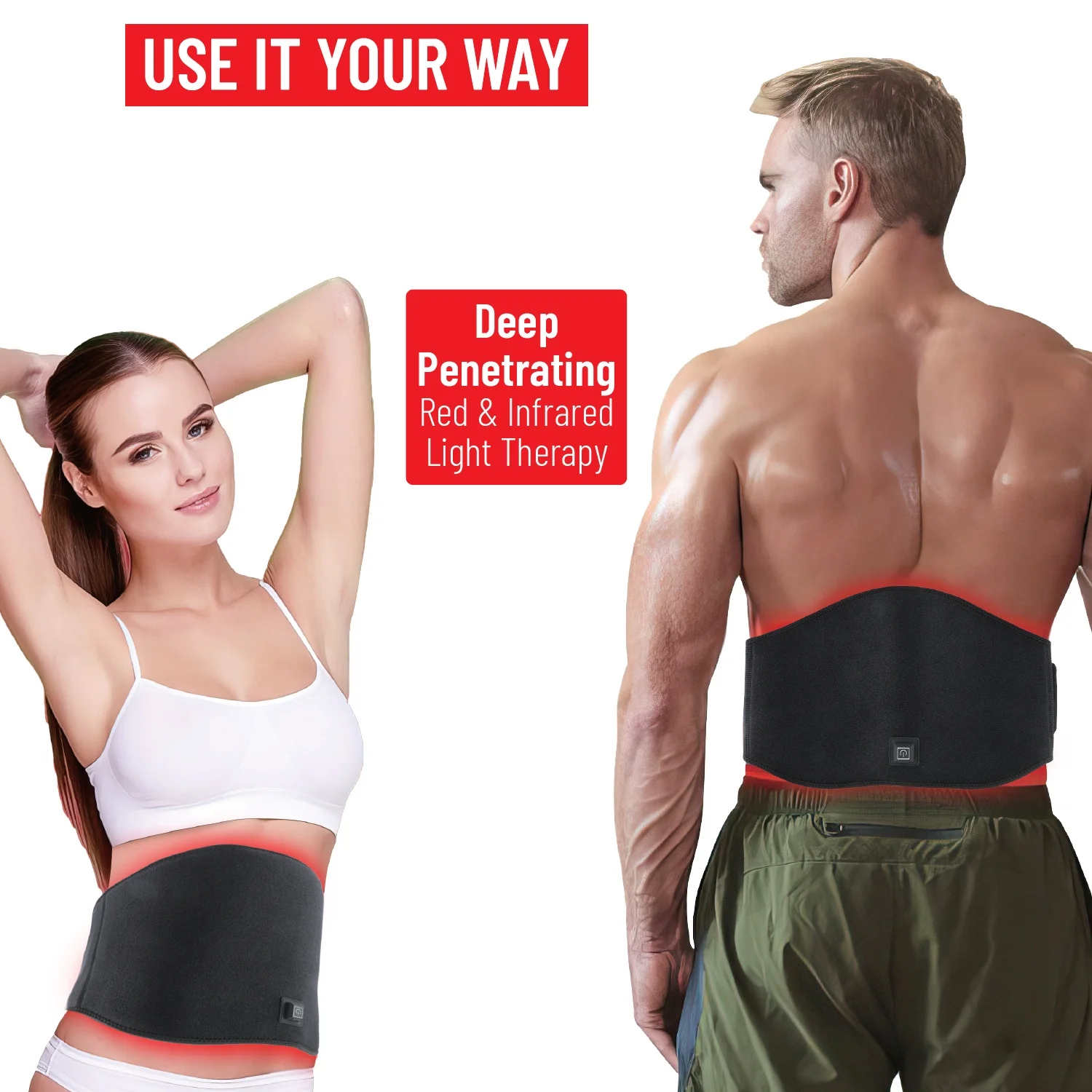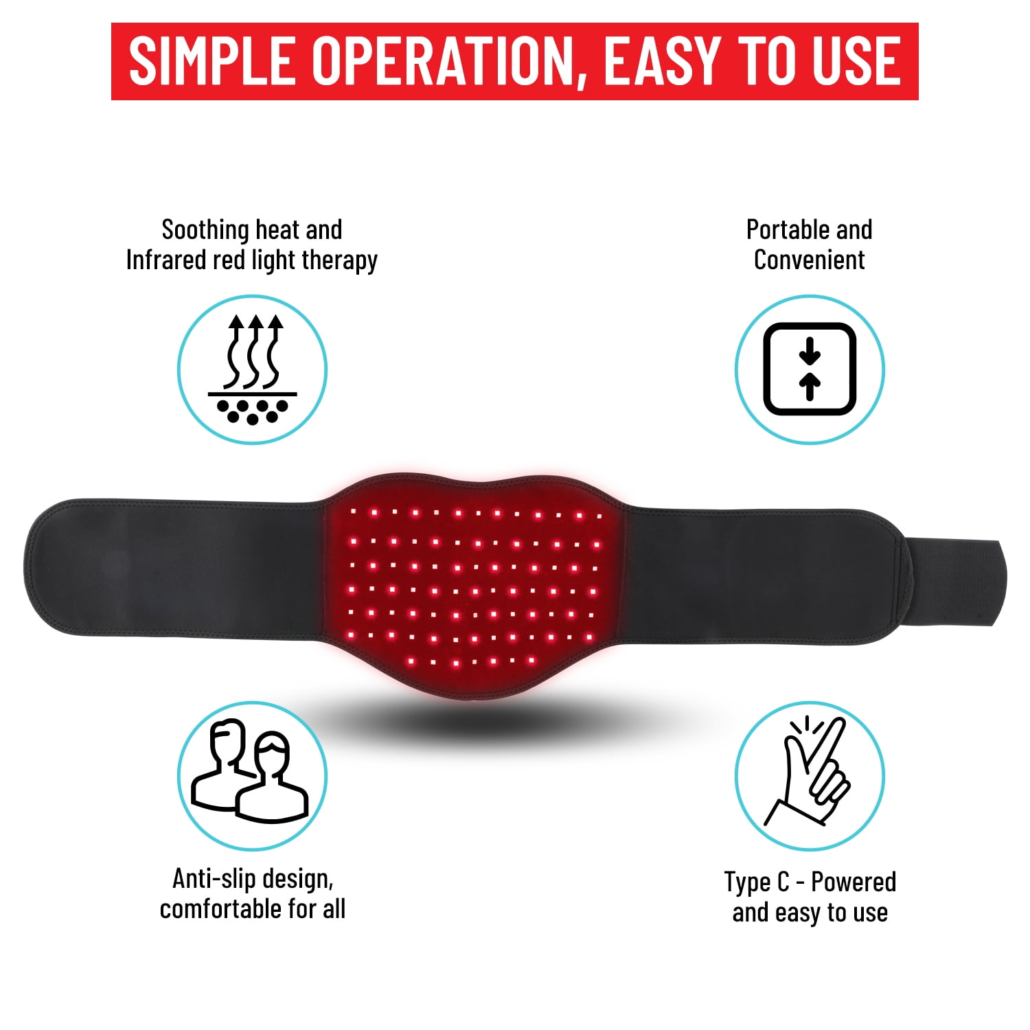 Infrared Heat Therapy: The red light therap belt utilizes infrared technology to provide deep heat therap to the targeted area. The infrared rays penetrate the skin, effectively relax muscle tension and promoting relaxation.