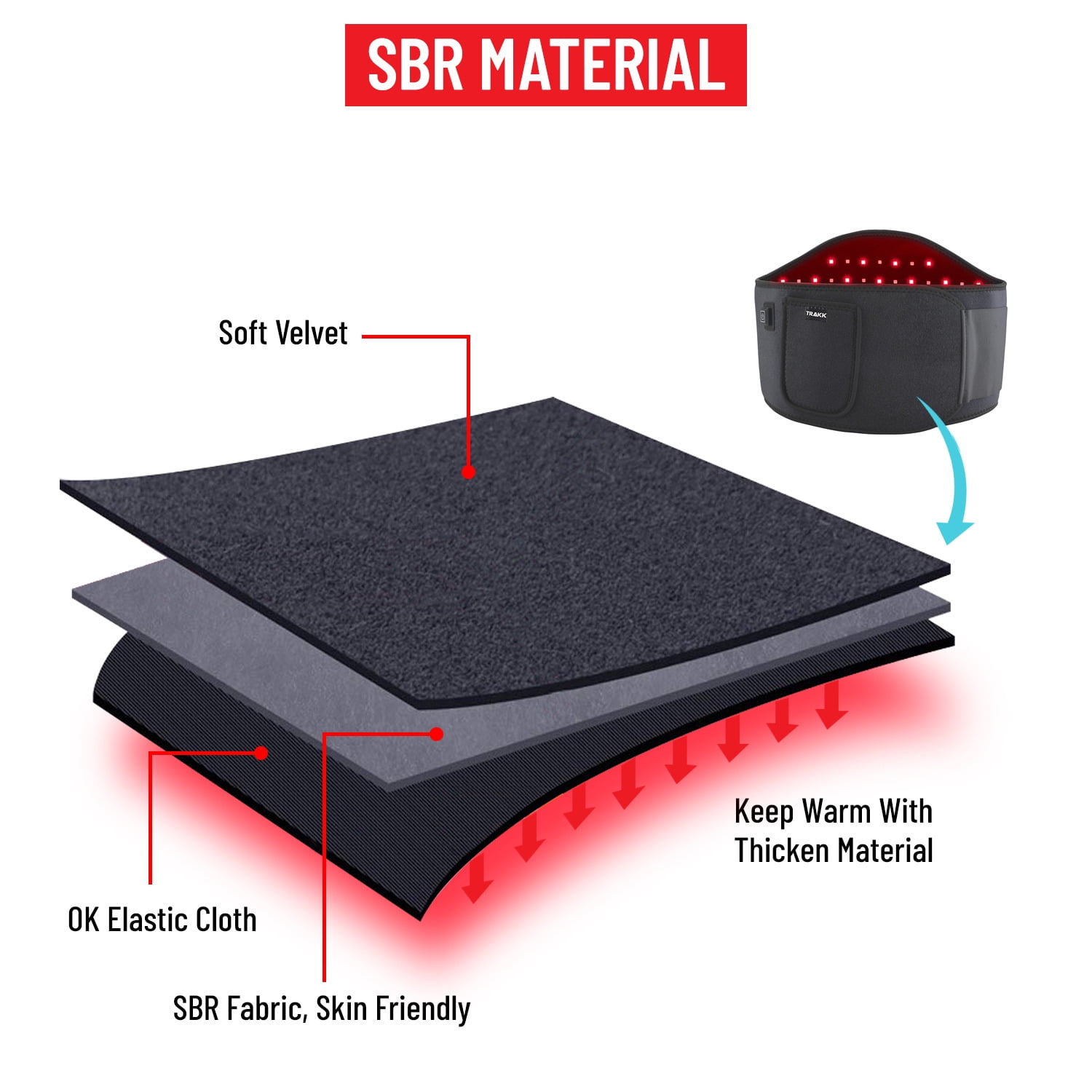 TRAKK Red Light Therapy Belt, Heat Wrap Red Light Therapy Device for Body