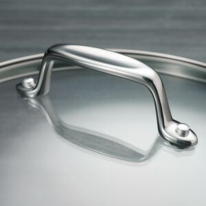 – Tempered glass lids help to lock in flavor and monitor your cooking progress, while ergonomically designed cast stainless-steel handles are riveted for easy handling.