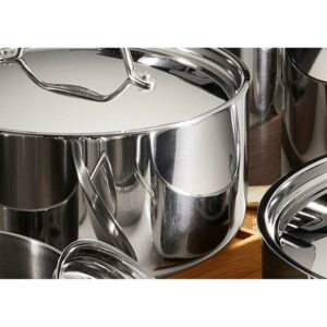 This Tramontina Gourmet Tri-Ply Clad 12-Piece Cookware Set can help you to make most meals easily. The surface distributes heat evenly to ensure thorough cooking throughout. Thanks to a Tri-Ply construction with an aluminum core, these kitchen pots and pans will last for a long time. With multiple pieces of different shapes and sizes, they’ll add extra versatility to the kitchen. Each piece is compatible with most cooktops. Ergonomic handles provide a comfortable grip for easy handling. This set features matching lids that are durable. It can be put in the dishwasher for quick and easy cleaning.