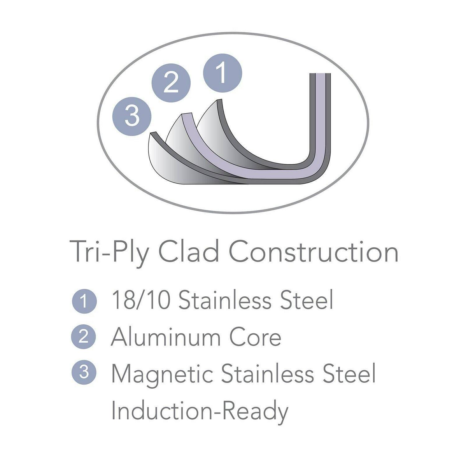 A classic design ideal for sauces and soups brings timeless appeal to your kitchen with the Tramontina Gourmet Tri-Ply Clad Covered Sauce Pot. Stainless steel construction is tri-ply clad for durability, distributing heat for even cooking. The ergonomic handles and lid offer secure convenience for professional performance.