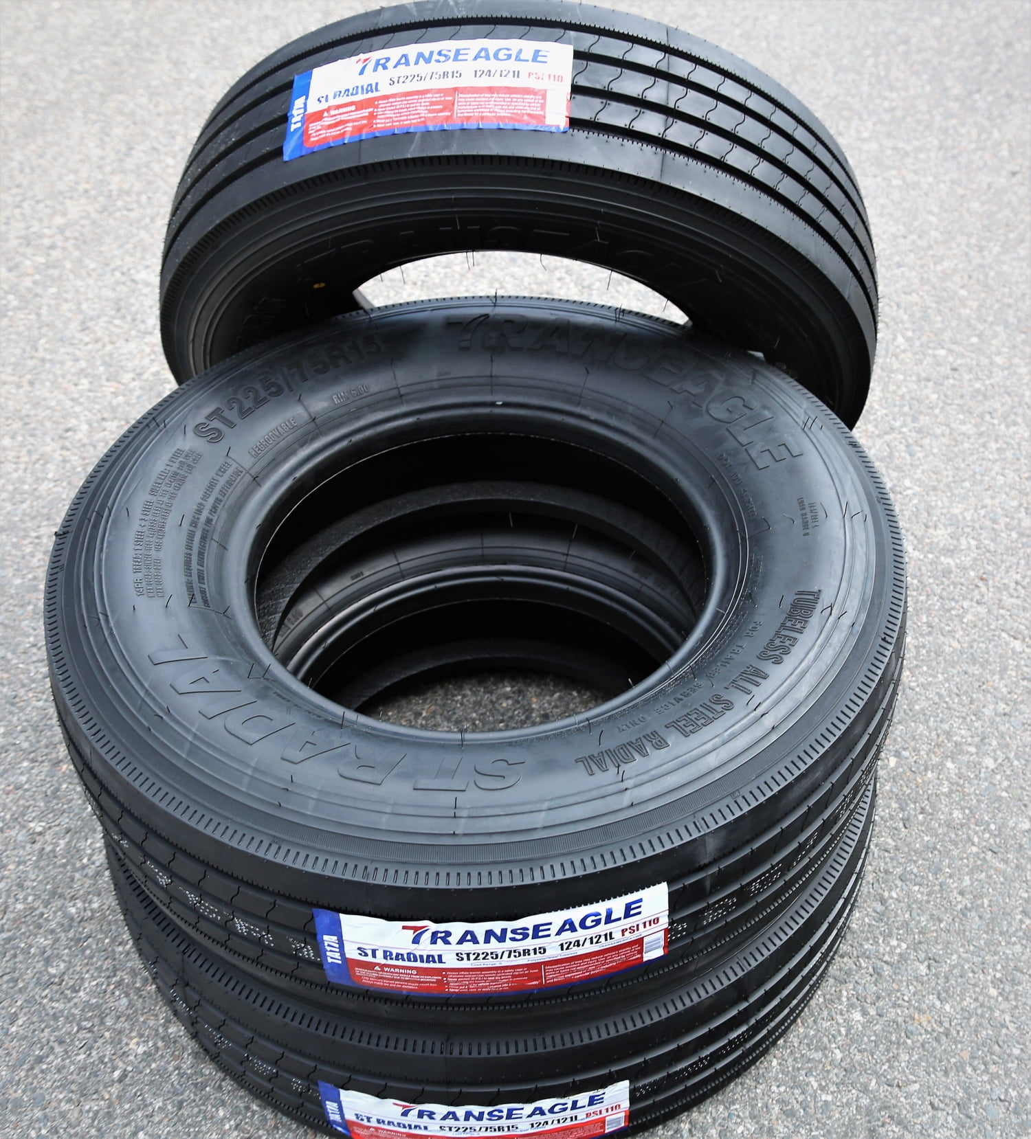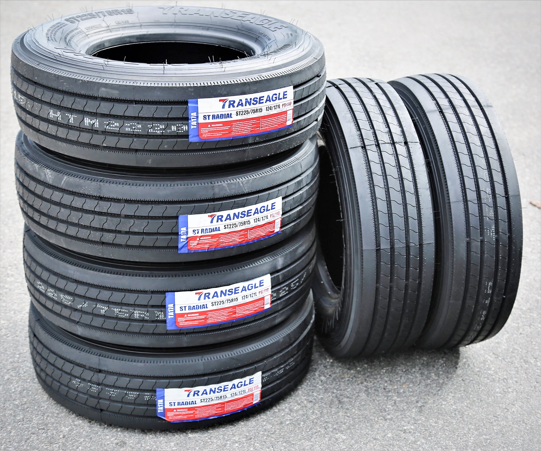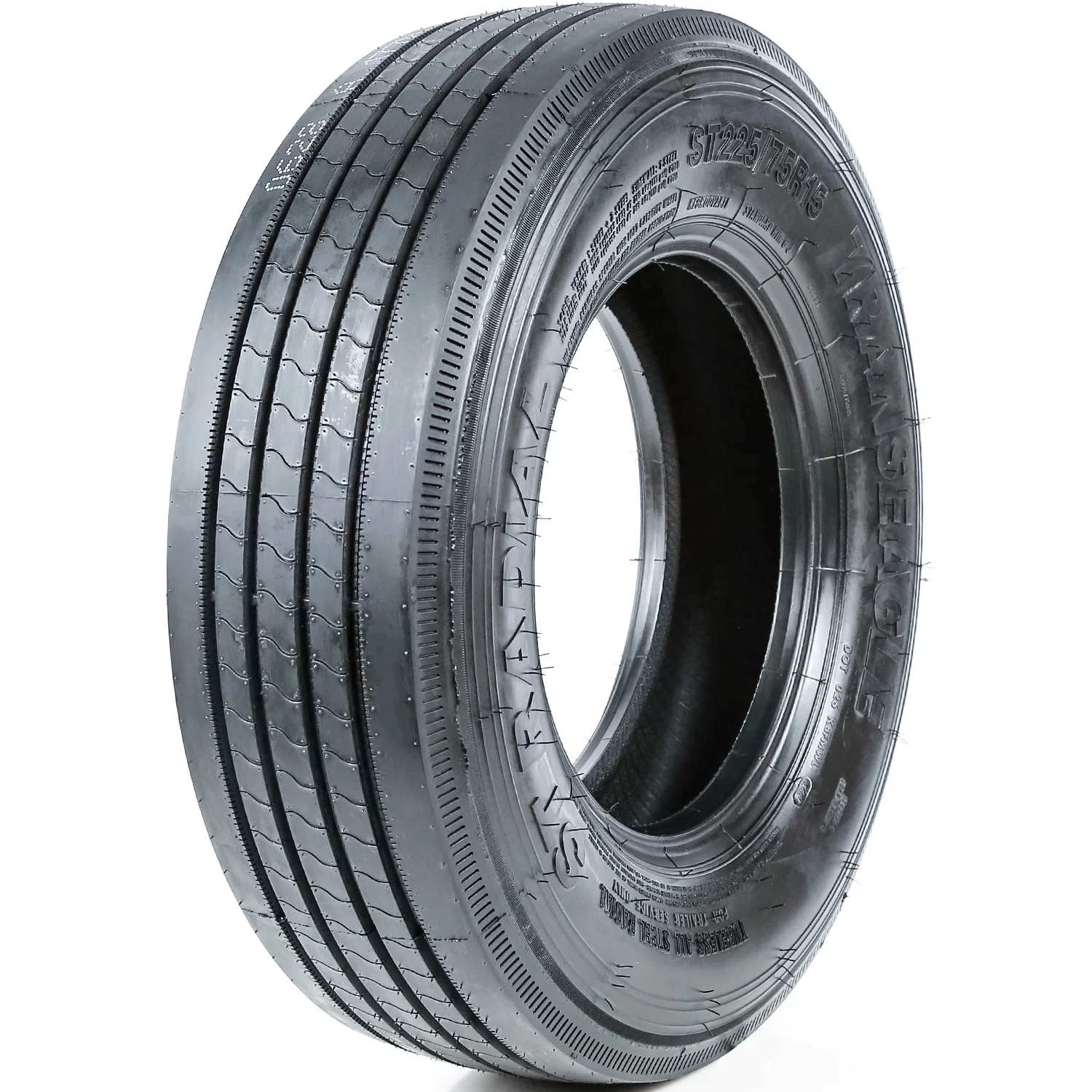 Attention! Due to the size of the tires, Packages might be SEPARATED in the courier facility and not be DELIVERED on the SAME DAY, even though we do ship them together. Tracking information can be checked by logging on to the courier website with the master tracking number you will receive via email. For example, you can receive 3 tires in one day and the 4th one the next day or the day after, or one tire in one day and the second one day after. We understand that this is a big inconvenience for our buyers, however, this is ABSOLUTELY out of our control. TransEagle ST Radial FEATURES AND BENEFITS Trailer tire, NOT FOR LIGHT TRUCKS Enhanced controllability Exceptional load durability Longer lasting tread life OVERVIEW The TransEagle ST Radial is a highway terrain all season tire manufactured for trailers. This tire is NOT MEANT TO BE MOUNTED ON LIGHT TRUCKS, as its construction will not support the weight and performing style of such vehicles. It can ONLY BE MOUNTED ON TRAILERS. The tire promotes great all weather traction. The symmetric tread design is able to firmly grip the road surface in dry, wet and light winter conditions. The wide circumferential grooves prevent hydroplaning by eliminating water and slush from below the tire’s footprint. The better hydroplaning ability and all weather traction ensure a safer all weather performance and response to the towing vehicle. The model’s specialized ribbed tread design also enhances its controllability. The solid shoulder ribs and the three siped center ribs keep the tire close to the road at all times. This improves the steering responsiveness, cornering ability and driving stability. The tire’s structure is stabilized against the driving pressure affecting it, while the shoulder design increases the model’s cornering ability and power. The tire’s steering responsiveness and accuracy to the towing vehicle’s instructions is also first-rate, ensuring a comfortable driving experience. The symmetric tread design also ensures a longer lasting tread life. The solid shoulder ribs maintain constant road contact, which manages to evenly distribute the driving pressure along the tread area. The equally circulated forces of acceleration, cornering and braking avoid irregular wear formations and increase the tread life and the tire’s usability. The result is an extended usability which makes the tire more cost efficient. The ST Radial promotes exceptional durability. The reinforced internal structure maintains the tire’s optimized shape under the driving pressure affecting it. As a result, the tire does not deform under the load pressure affecting it, as the strengthened full nylon and ply construction improve the tire’s durability. The tire is able to carry and withstand heavy loads with this reinforcement, which ensures a safer driving experience and a better performing ability. Manufacturers recommend changing tires every 10 years. As long as tires are properly stored before they are sold, the year of their manufacture will not shorten their service life.