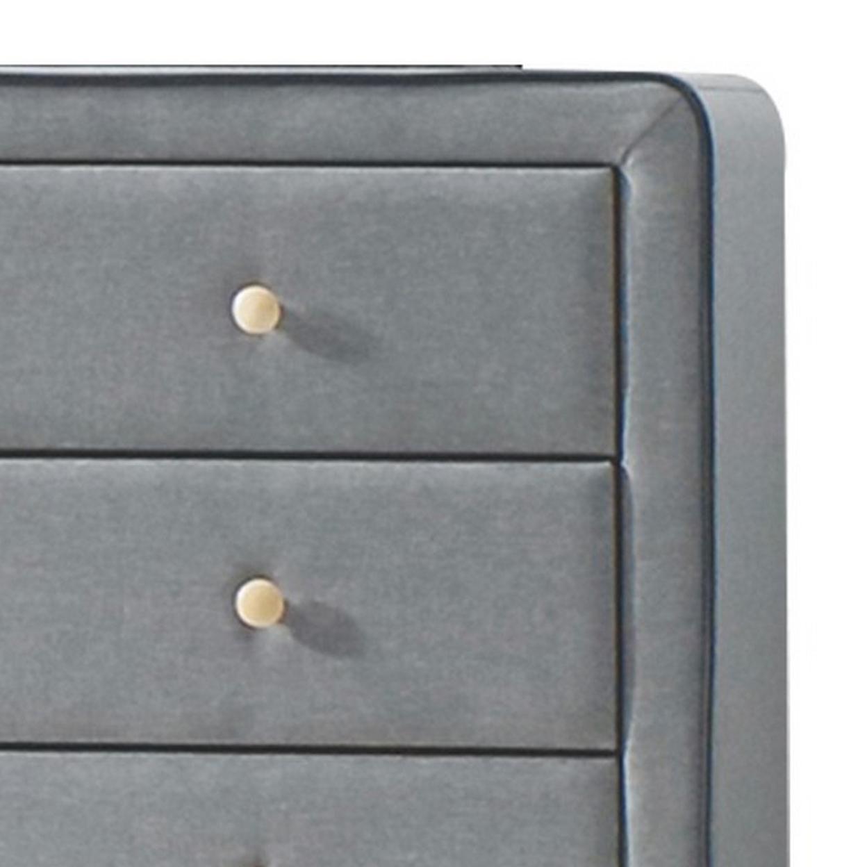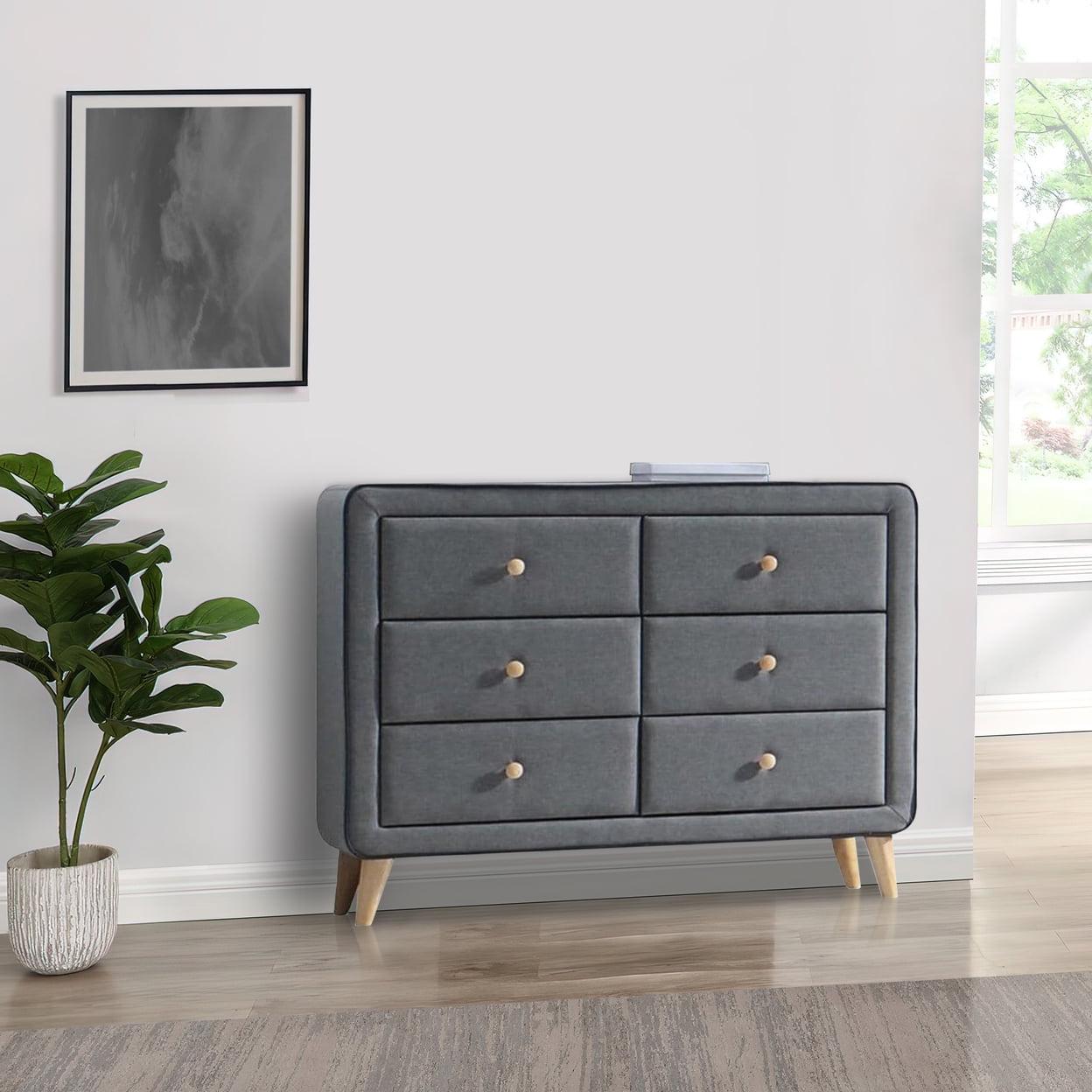 Transitional Style Wood and Fabric Upholstery Dresser with 6 Drawers, Gray