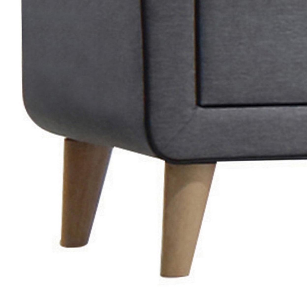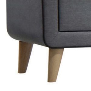 Transitional Style Wood and Fabric Upholstery Nightstand with 2 Drawers, Gray- Saltoro Sherpi Transform your living space with the addition of this transitional style nightstand incorporating gray fabric upholstery. It features two drawers with ample storage space and wooden tapered legs that make it look elegant. Finished in a gray color, this nightstand is versatile and can be placed in any corner of your house. Other featured items in the image are sold separately.