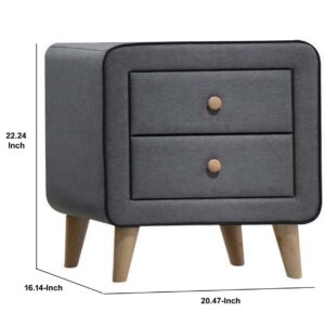 Transitional Style Wood and Fabric Upholstery Nightstand with 2 Drawers, Gray- Saltoro Sherpi