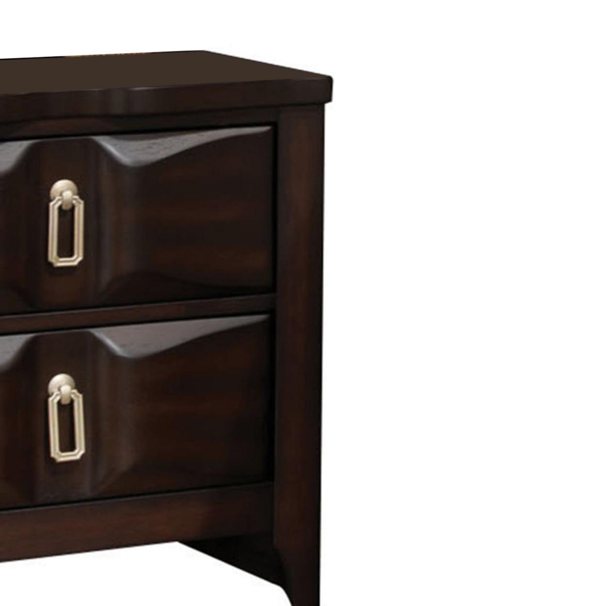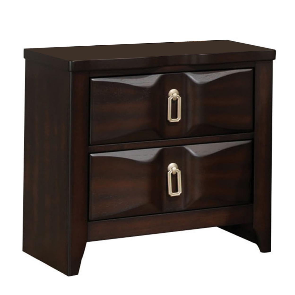Transitional Style Wood Nightstand with 2 Drawers, Espresso Brown- Saltoro Sherpi