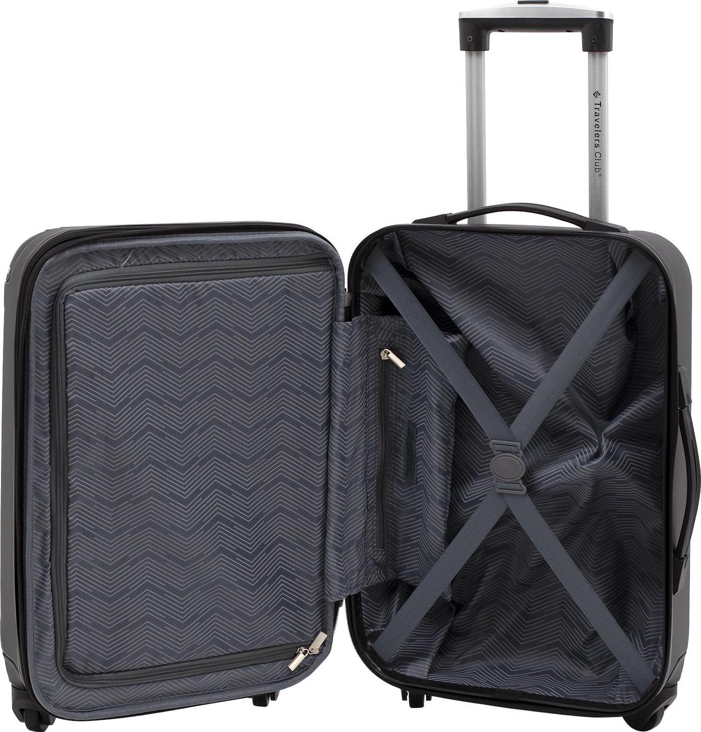 Travelers Club 2 pc. Expandable Spinner Luggage. Consists of a 28″ expandable upright and a 20″ expandable rolling carry-on. All feature 4 spinner wheels, locking telescopic handle, top and side carry handle along with being fully lined. 28″ measures 28″ x 18″ x 13″ and the 20″ rolling carry-on measures with the wheels 21″ x 13″ x 11″ and meets most airline carry-on regulations.