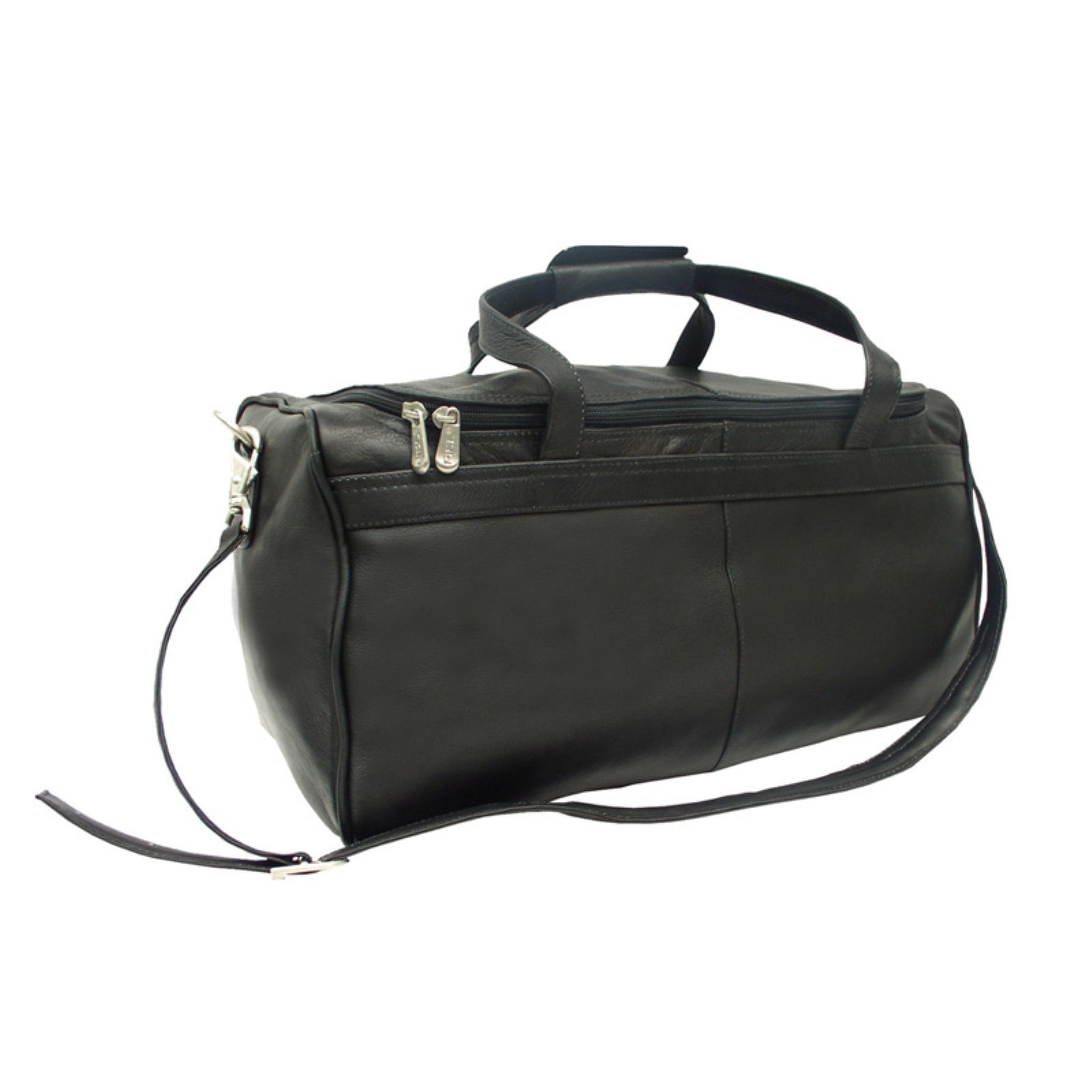 U-zip opening to main compartment with interior zip-pocket. Back strap to attach to a telescopic handle, double handles, and an adjustable/detachable shoulder strap.