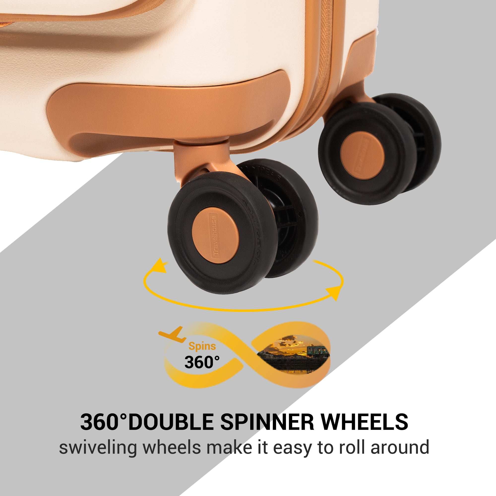 Travelhouse Carry-On Luggage Sets Front Open 4 Piece Hardside Suitcase Set with Spinner Wheels TSA Lock Toiletry Bag and Shoe bag,White