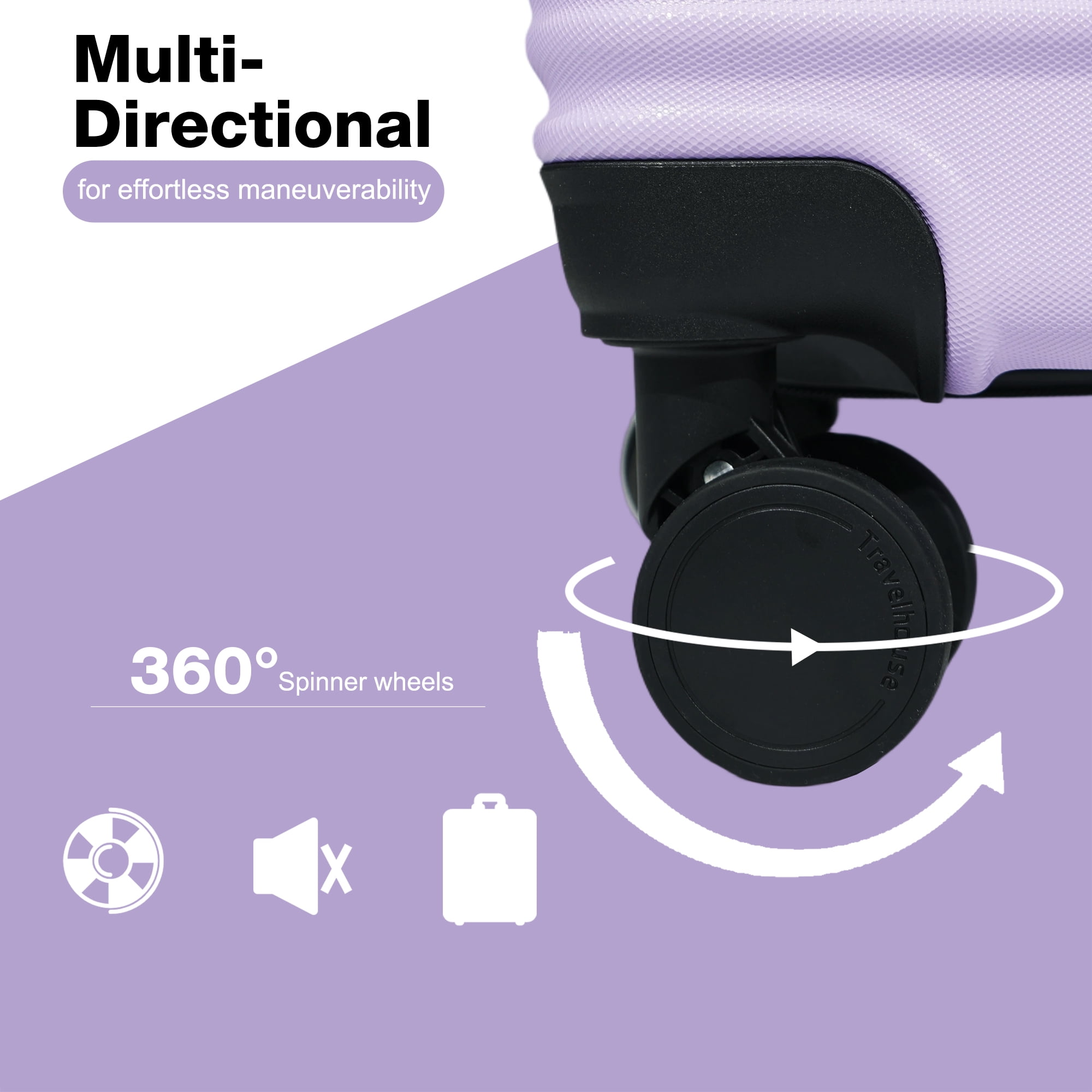 Travelhouse 3 Piece Hardside Luggage Set Hardshell Lightweight Suitcase with TSA Lock Spinner Wheels 20in24in28in.(Light Purple)