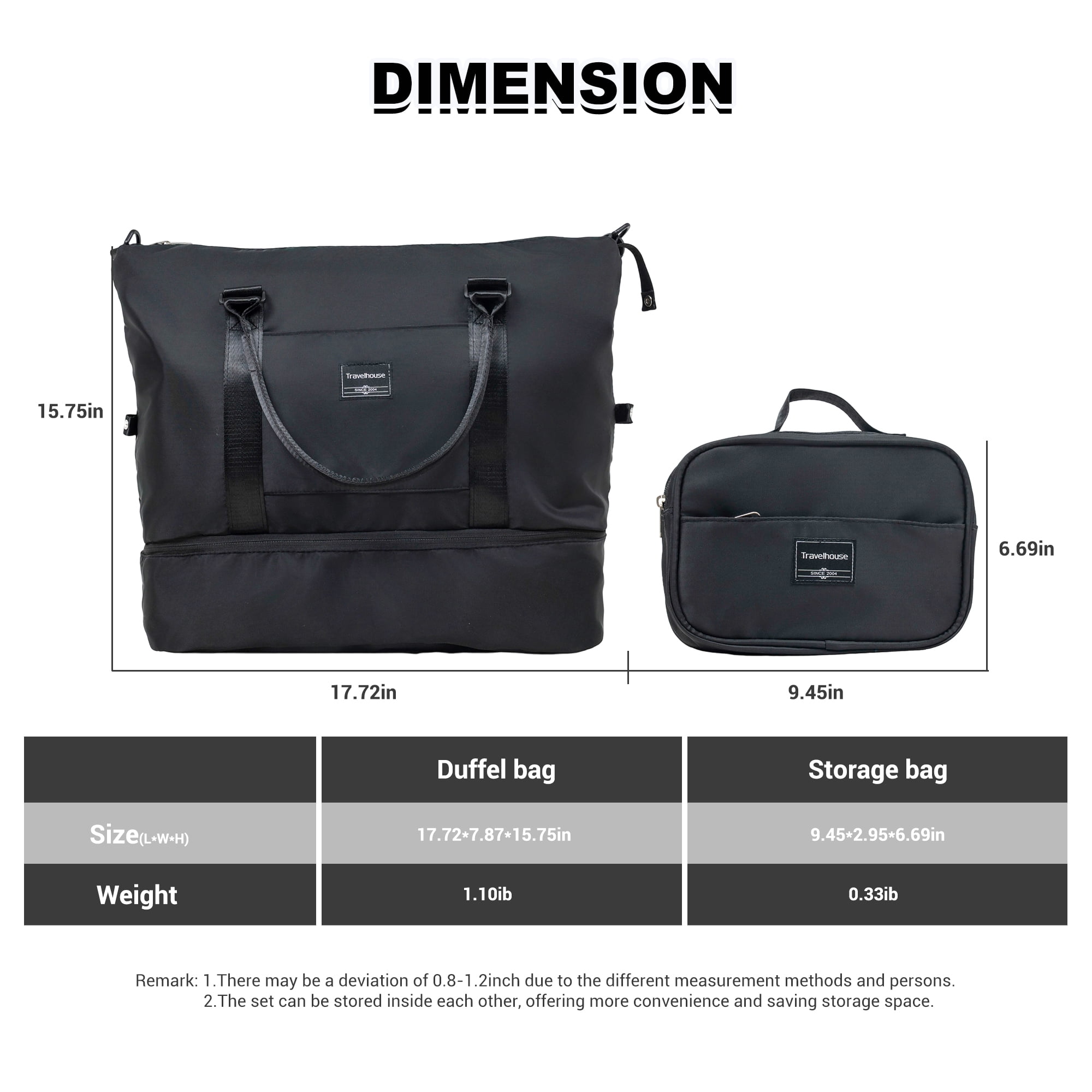 Travelhouse 5 Piece Hardside Luggage Set Hardshell Expandable Lightweight Suitcase TSA Lock Spinner Wheels with Duffel Bag.(Black)