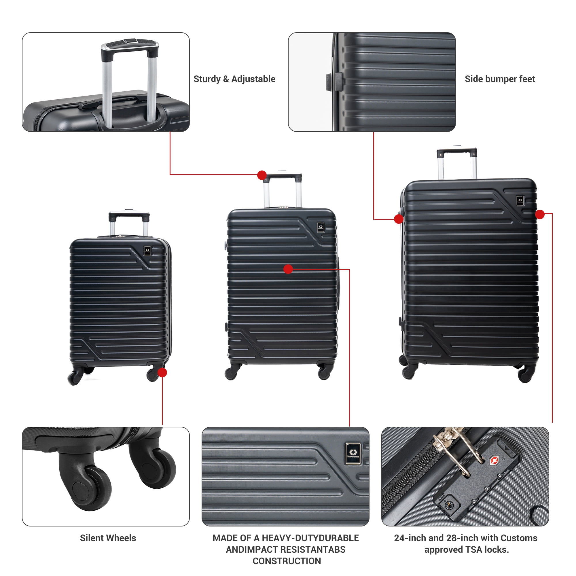 | Model | Travelhouse 3 Piece Hardside Luggage Set |