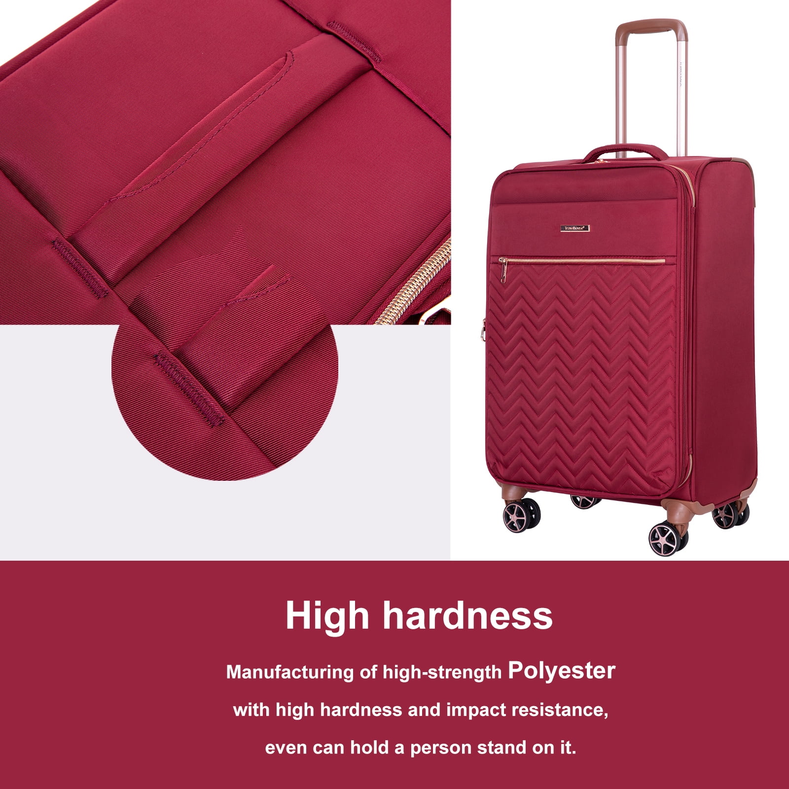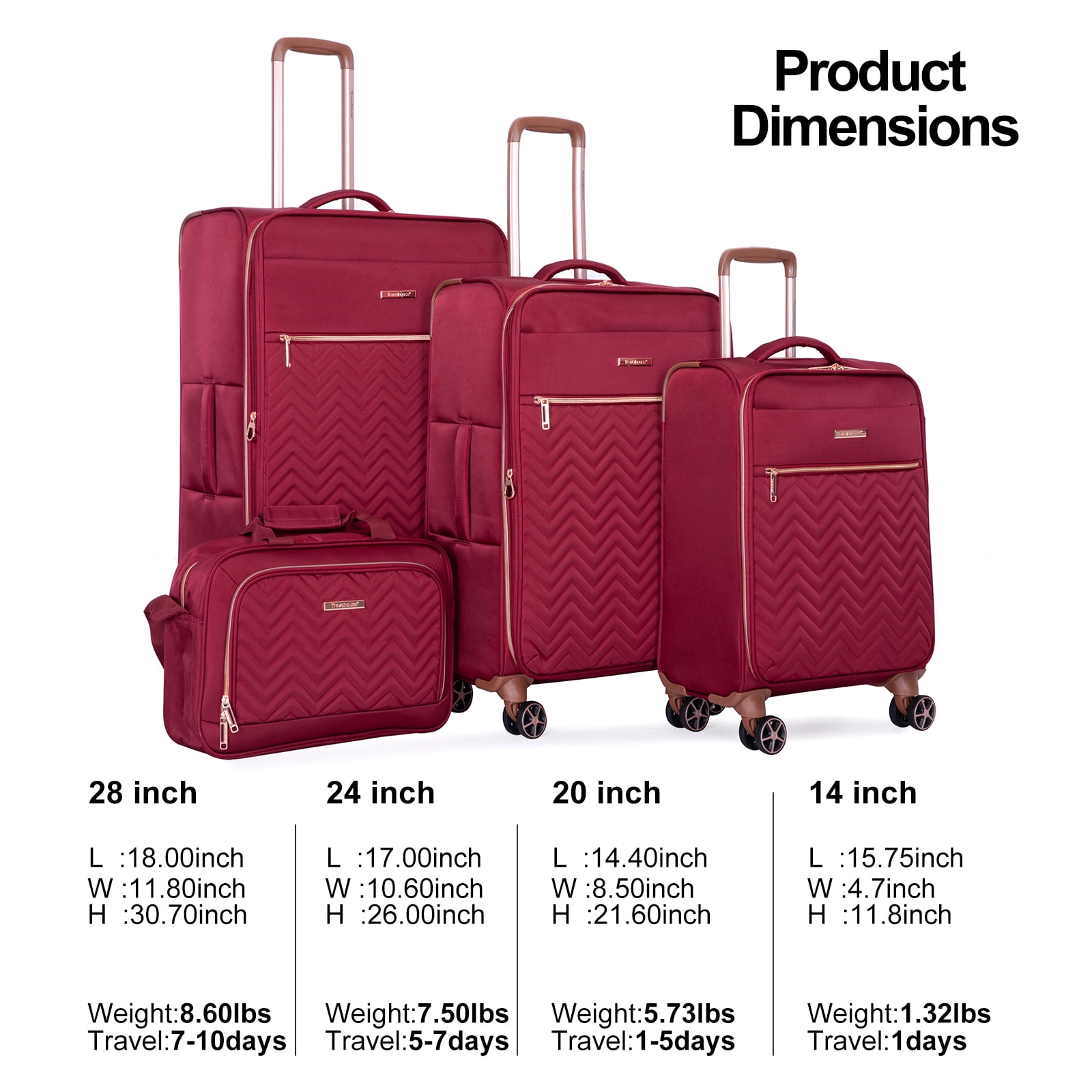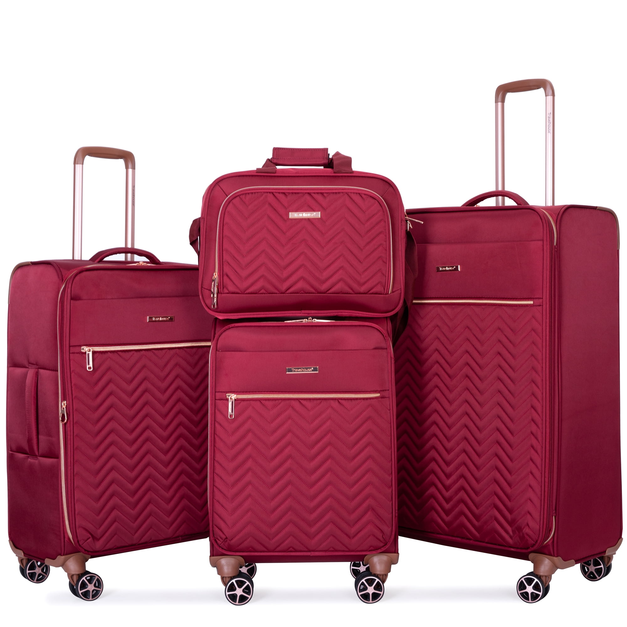 Travelhouse 4 Piece Luggage Set Softside Expandable Lightweight Suitcase with Double Spinner Wheels.(Wine Red)