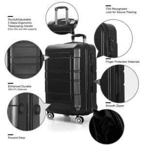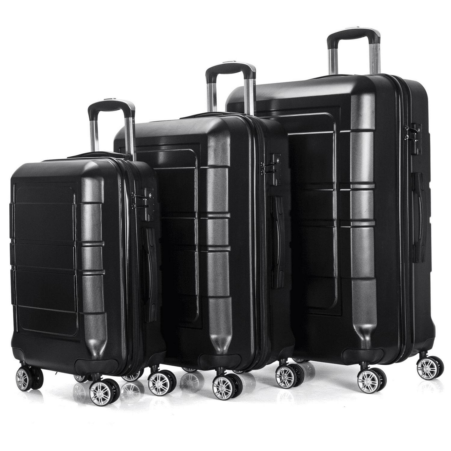 Traveling Luggage, 3pcs Hardside Luggage Set, 20 +24 +28 with TSA Lock, Black