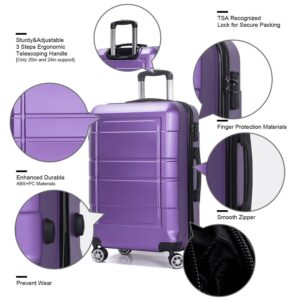 Traveling Luggage, 3pcs Hardside Luggage Set, 20 +24 +28 with TSA Lock, Purple