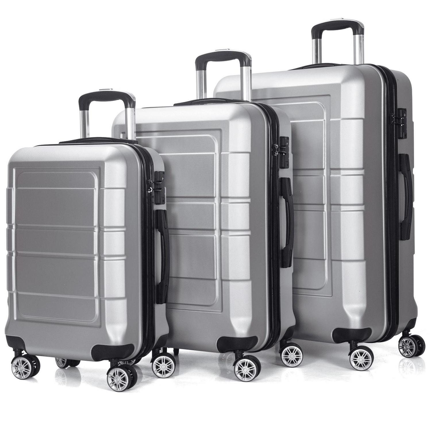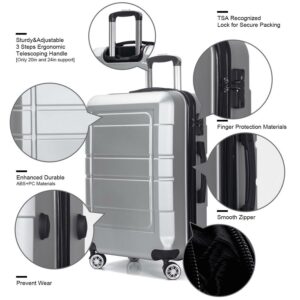 Traveling Luggage, 3pcs Hardside Luggage Set, 20 +24 +28 with TSA Lock, Silver