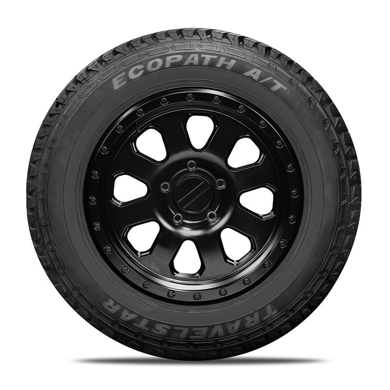 Attention! Due to the size of the tires, Packages might be SEPARATED in the courier facility and not be DELIVERED on the SAME DAY, even though we do ship them together. Tracking information can be checked on the couriers website with the master tracking number you will receive via email. For example: You can receive 3 tires in one day and the 4th one the next day or the day after, or one tire in one day and the second one day after. Travelstar Ecopath A/T LT275/65R18 123S Light Truck All Terrain 275/65/18(Tire Only) Features And Benefits Road Hazard Warranty Manufacturer Tread Wear Out Warranty All terrain traction Low on-road road noise Durable controllability Self-cleaning tread design OVERVIEW The Travelstar EcoPath A/T Tire is an all terrain, all season tire manufactured for light trucks and SUVs. Where are your tires leading you? Whether cruising down the highway or taking the road less traveled, let the Travelstar EcoPath A/T Tire lead you there. Designed to give you that balance of a smooth, quiet highway ride, the Travelstar EcoPath A/T is an all-terrain tire which can give you additional traction off-road.The specially formulated compound delivers superior wear and puncture resistance.The step-down tread blocks with 3d siping strengthen the tread blocks while providing outstanding handling in wet and dry conditions. Addition, our tire product comes with a Road Hazard Warranty, and here’s how it benefits you: This warranty provides you with protection against unforeseen road circumstances such as punctures, cuts, or other damages. If your tire gets damaged due to road conditions while driving, our warranty offers support and assistance without any additional expenses on your part.Purchasing our tire product grants you this reassuring Road Hazard Warranty, adding an extra layer of safety to your driving experience!