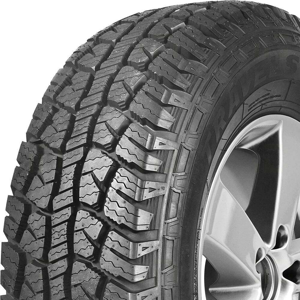 Travelstar EcoPath A/T P235/75R15 109S XL Tire Designed for use on Jeeps, light trucks, and SUVs Aggressive tread pattern allows for solid traction on and off road Wide grooves and open shoulders promote self cleaning for consistent traction and good braking on wet and dry roads The tire is specifically designed to provide a balance between on-road comfort and off-road traction. Its aggressive, non-directional tread pattern with large, staggered blocks and an upper sidewall design helps it grip on soft, loose, and uneven terrain like mud and dirt. The EcoPath A/T is an all-season tire with a tread pattern that provides solid traction in dry, wet, and even light winter conditions. Its wide circumferential and lateral grooves are engineered to evacuate water and slush from the tire’s footprint, reducing the risk of hydroplaning. The tread design is self-cleaning, meaning the wide grooves and staggered blocks are designed to eject mud, snow, and rocks that get stuck between the tread elements. This helps to maintain consistent traction and also prevents damage to the tire’s casing from stone retention. The tire is built with a specially formulated compound that offers superior wear and puncture resistance. Many listings for this tire highlight a 50,000-mile limited manufacturer tread life warranty, indicating a focus on longevity. The tread design, particularly the center tread block sequence, is engineered to maintain constant contact with the road or terrain. This improves steering responsiveness and driving stability, giving the driver more confident control both on and off the road.