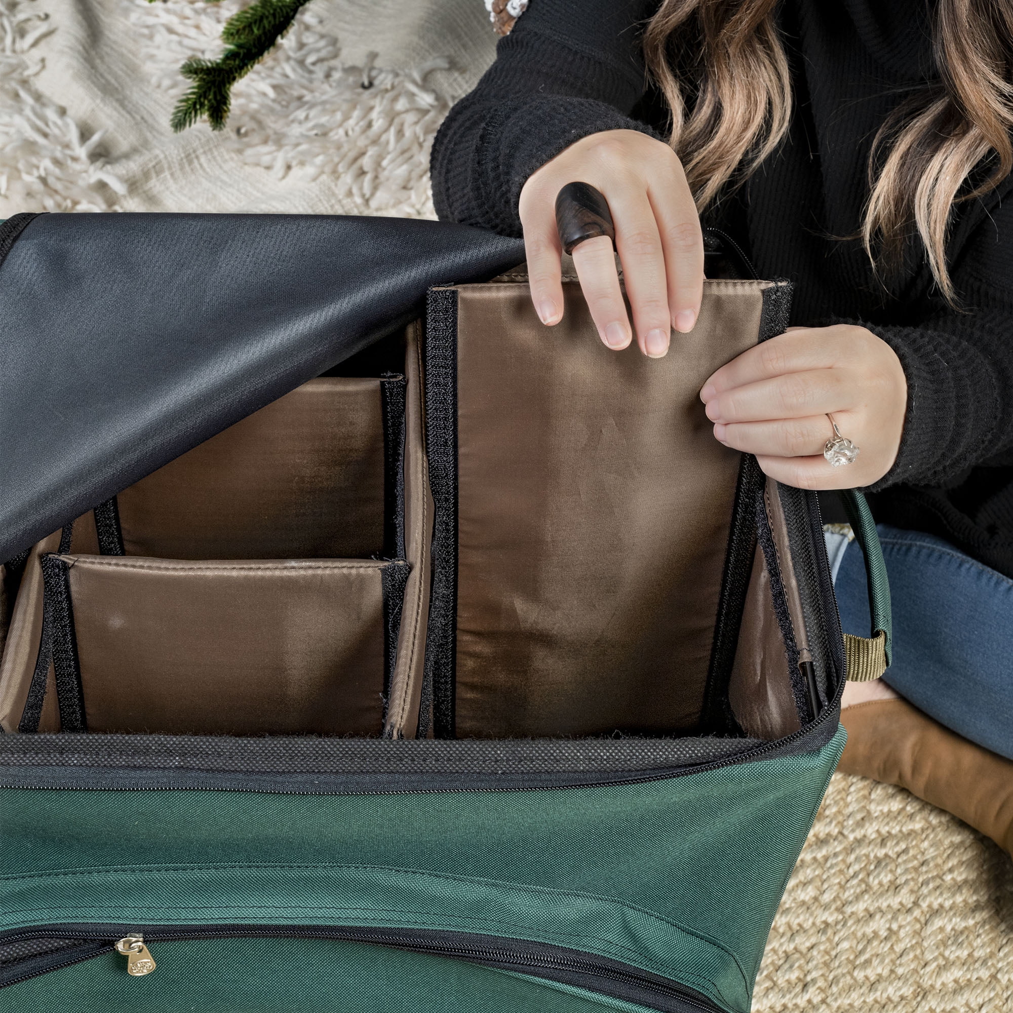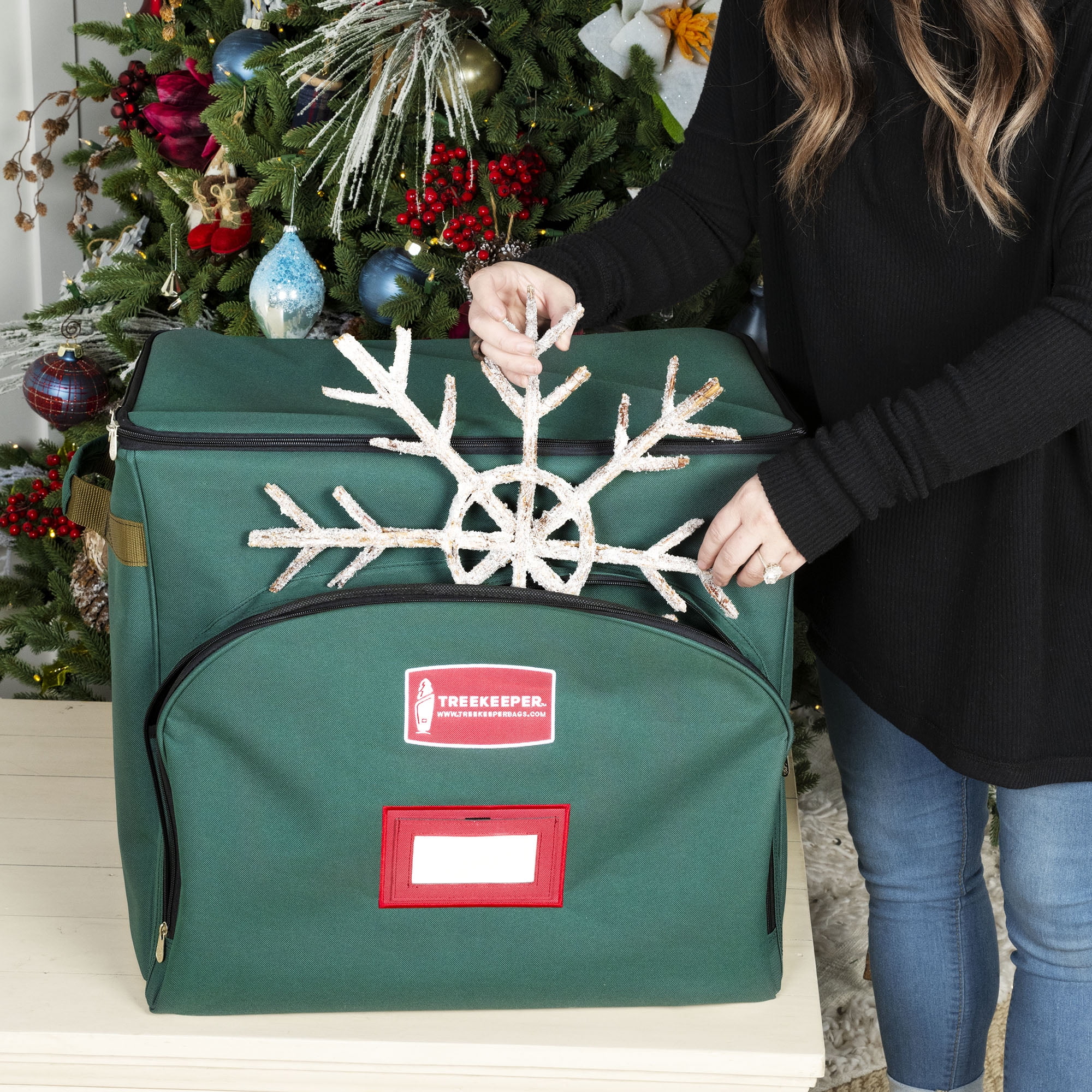 The TreeKeeper 18 in. Nutcracker Collectibles Storage Box – Treat your family’s favorite Christmas Nutcrackers to their own safe place with the decorative 18-inch nutcracker collectibles storage box. This handy chest has enough space to store up to 9 of your collectible nutcrackers, with sturdy dividers to keep them separated and protected. The storage bag also boasts reinforced padded handles for easy transportation all throughout your home, along with an extra front pocket perfect for storing any accessories you may need for decorating! Our acid-free materials offer maximum protection against fading colors on your nut crackers, making this storage chest a must-have!