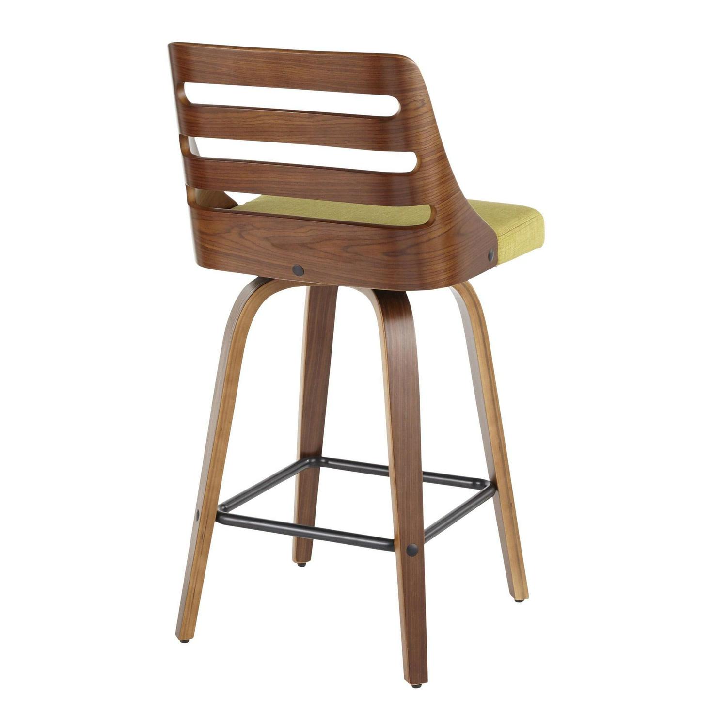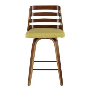 Trevi Mid-Century Modern Counter Stool in Walnut Wood and Green Fabric by LumiSource – Set of 2