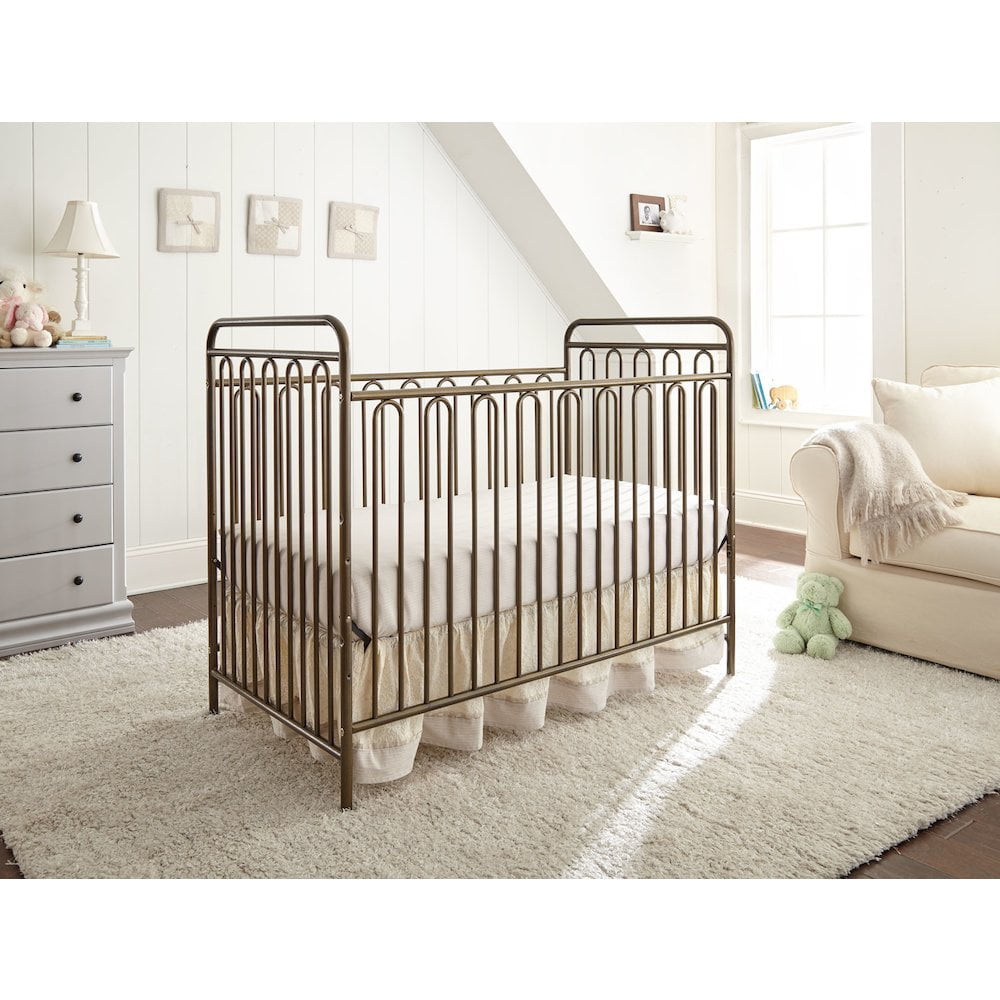 The Trinity 3 in 1 full sized metal crib, in a classic hoop design in an Alabaster White textured finish, is a welcome addition to any room decor Made with high quality steel and non toxic powder coated finishing techniques that easily stands up to years of repeated cleanings The Trinity can later be converted from a crib to a toddler bed or day bed and all conversion parts are included with the crib The metal spring mattress support high is adjustable to three positions and this crib accepts a 28” x 52” standard full size crib mattress which is sold separately and available through LA BABY This crib is designed to the highest standards and meets or exceeds all C.P.S.C., (Consumer Product Safety Commission), CFR 1219 standards for full size cribs Passes all applicable mandatory safety standards