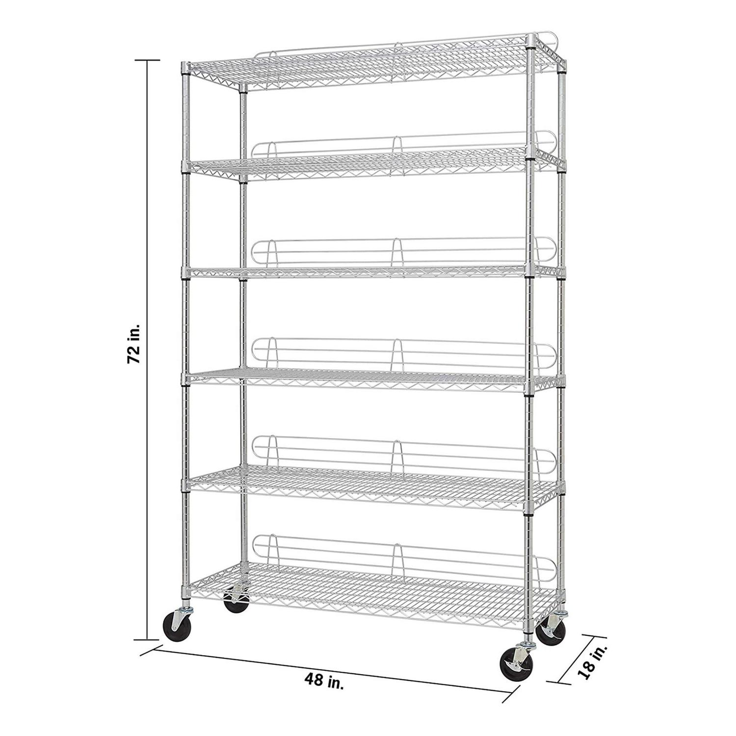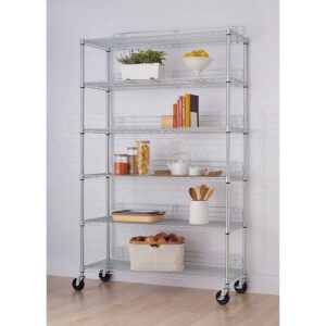 Trinity 6-Tier Commercial Wire Shelving Rack with Wheels, Chrome