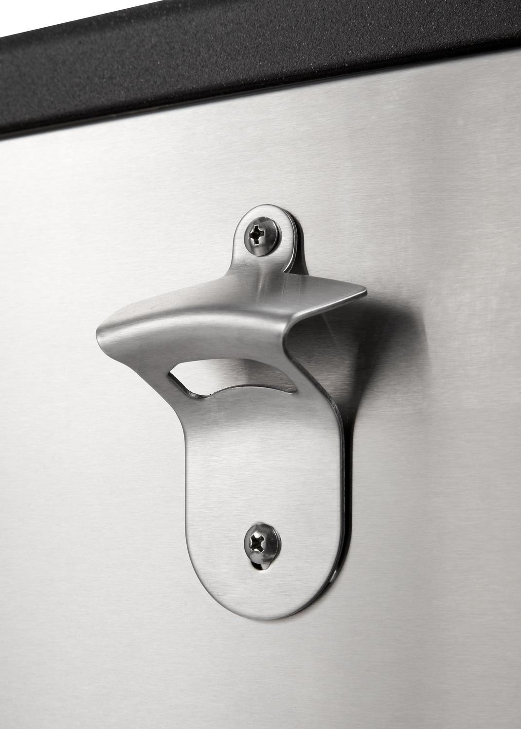- Attached bottle opener and cap catcher