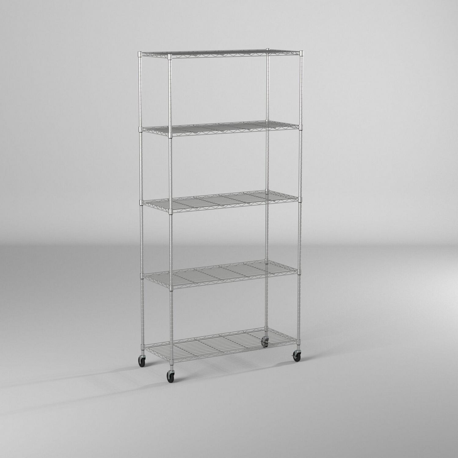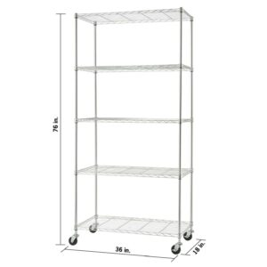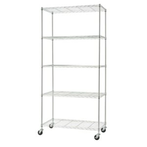 Trinity Basics 5-Tier 36 x18 Wire Shelving Unit with Wheels, Chrome NSF