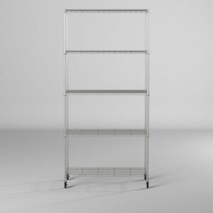 Trinity Basics NSF-certified, 5-tier wire shelving rack is perfect for any business, home, garage or kitchen use. With a 250 lb weight capacity per shelf on feet levelers, it can hold your large, heavy boxes, big items and everything in between. Assembly requires no tools and uses a slip-sleeve locking system allowing shelves to be an adjustable in 1-inch increments.