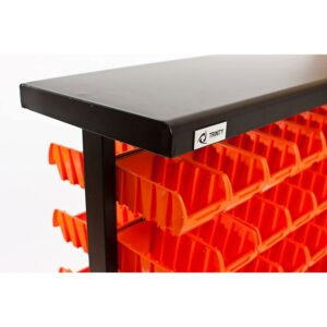 TRINITY Dual Sided Color Coded Rolling 94 Bin Storage Rack, Orange and Grey