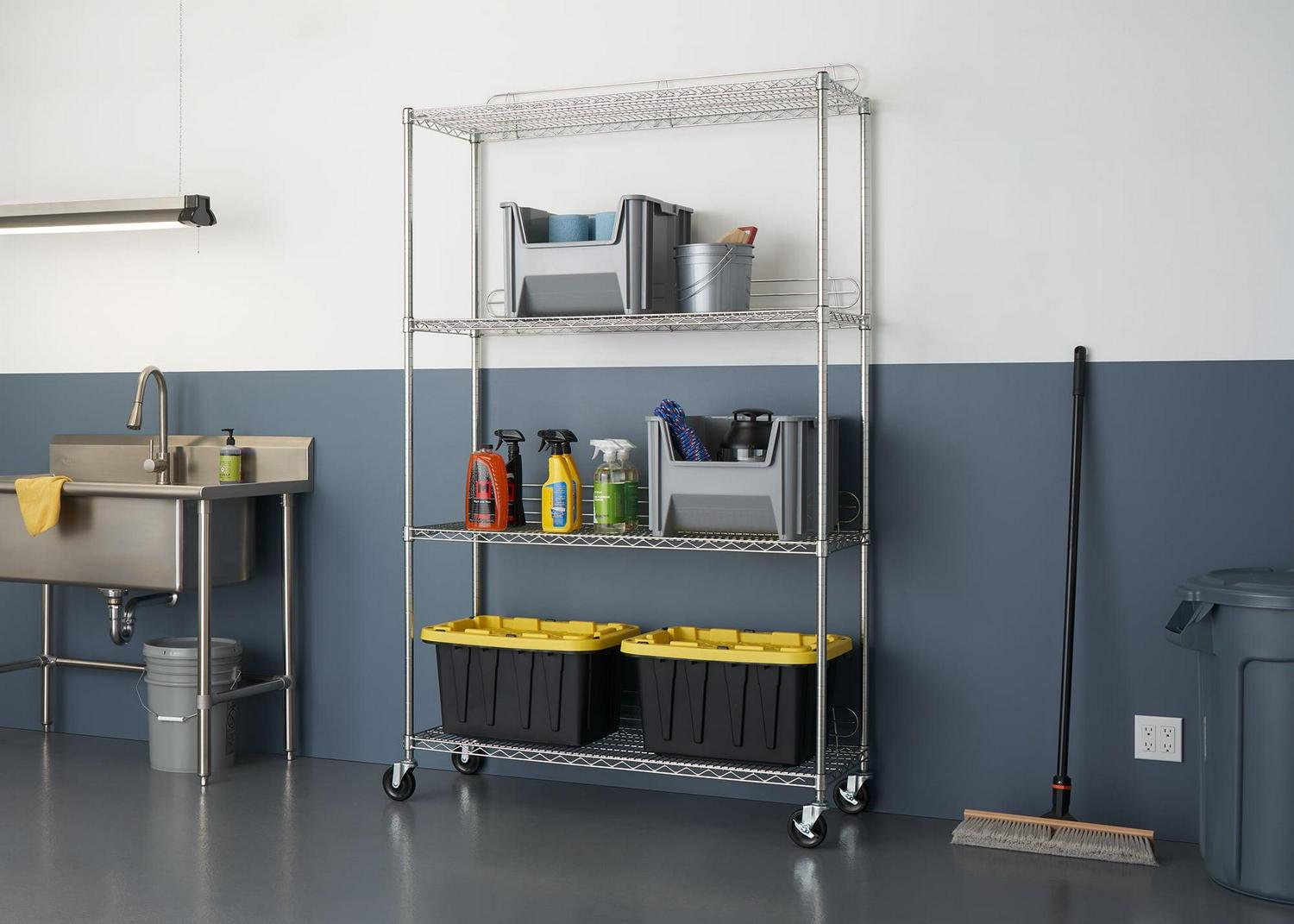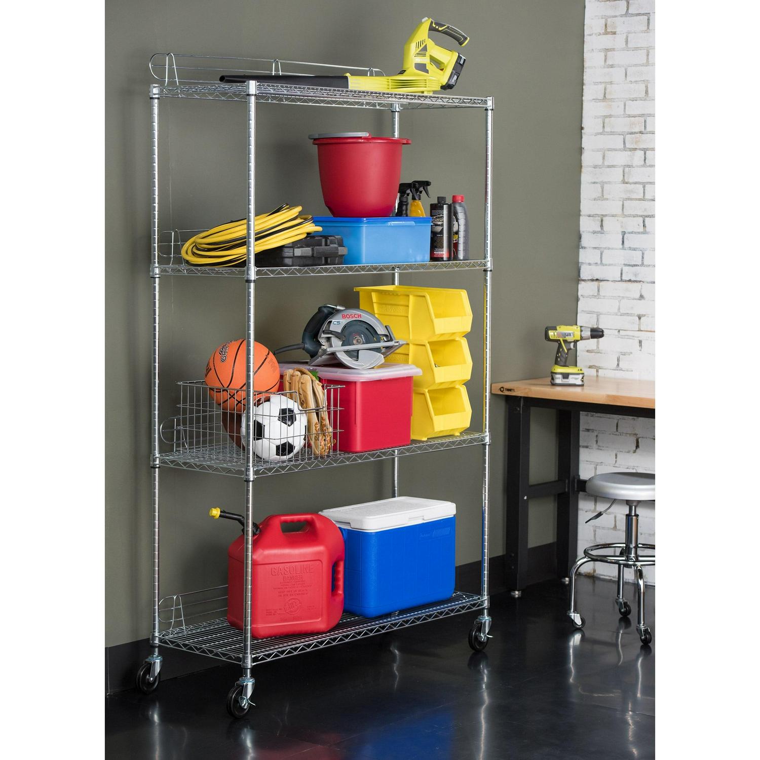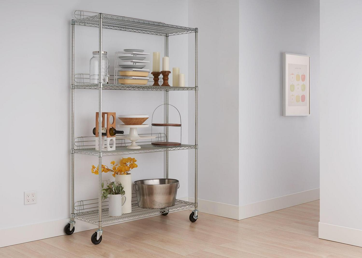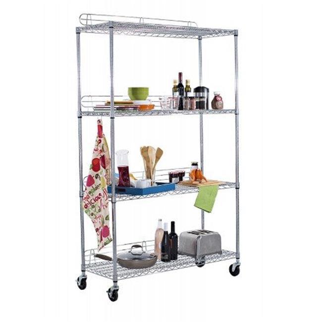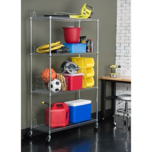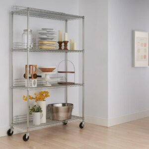 Trinity EcoStorageA 4-Tier 48 x18 Wire Shelving Rack with Wheels – Chrome NSF