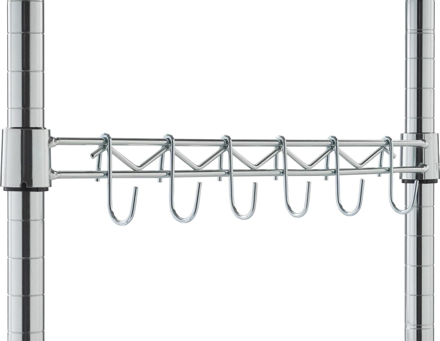 – The shelf features a sleek chrome color.