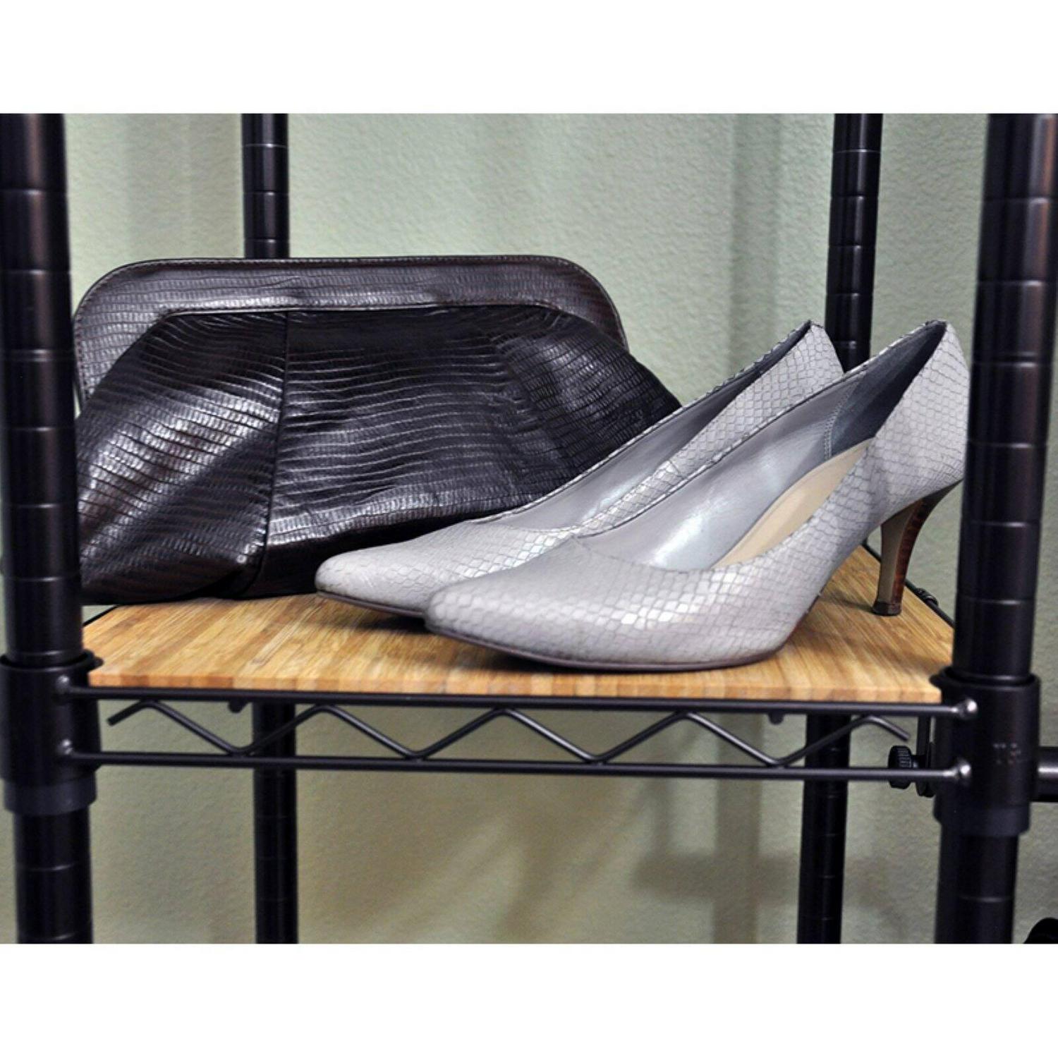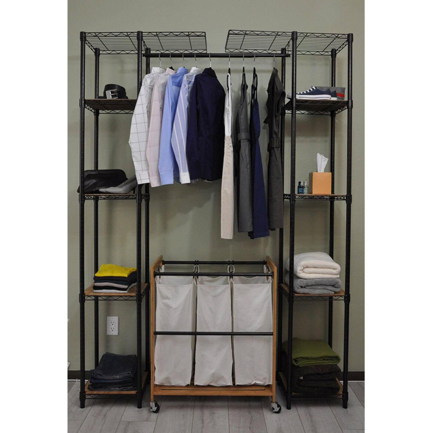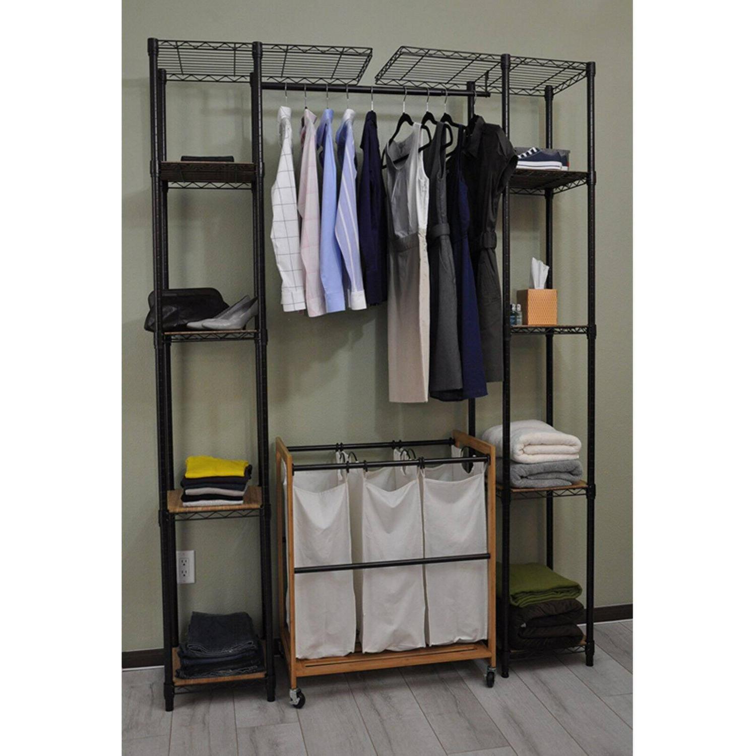 Enjoy your closet again with the Trinity Expandable Closet Organizer. This sturdy unit has adjustable bars that let you customize it to the length of items you need to hang. It is freestanding and also includes adjustable shelves with durable bamboo boards.