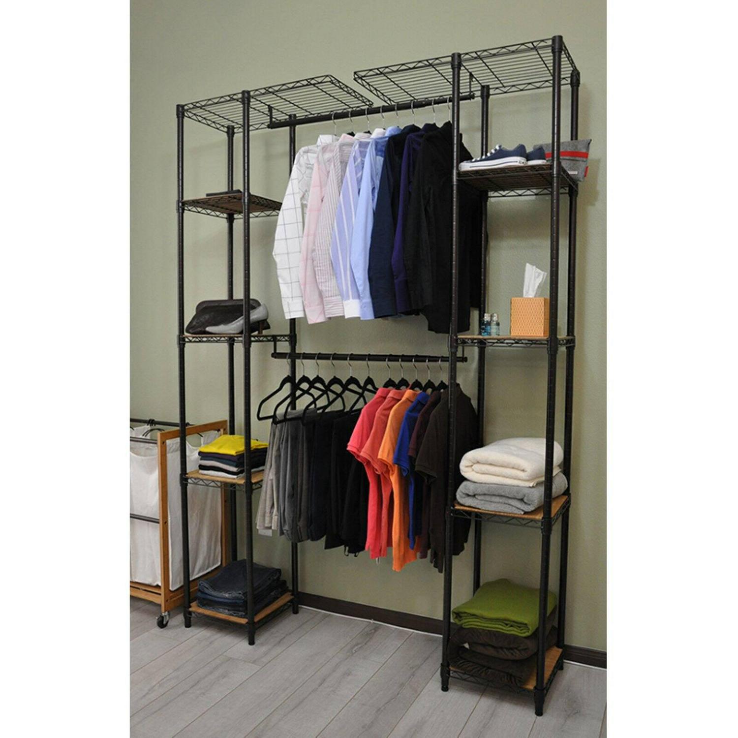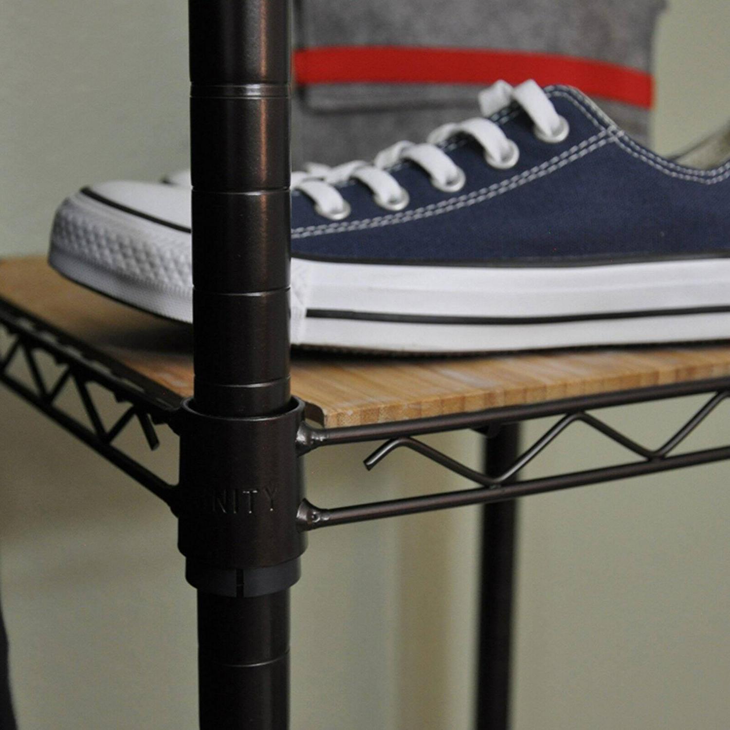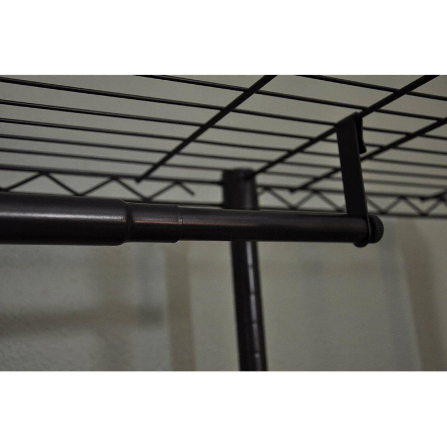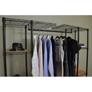 Enjoy your closet again with the Trinity Expandable Closet Organizer. This sturdy unit has adjustable bars that let you customize it to the length of items you need to hang. It is freestanding and also includes adjustable shelves with durable bamboo boards.