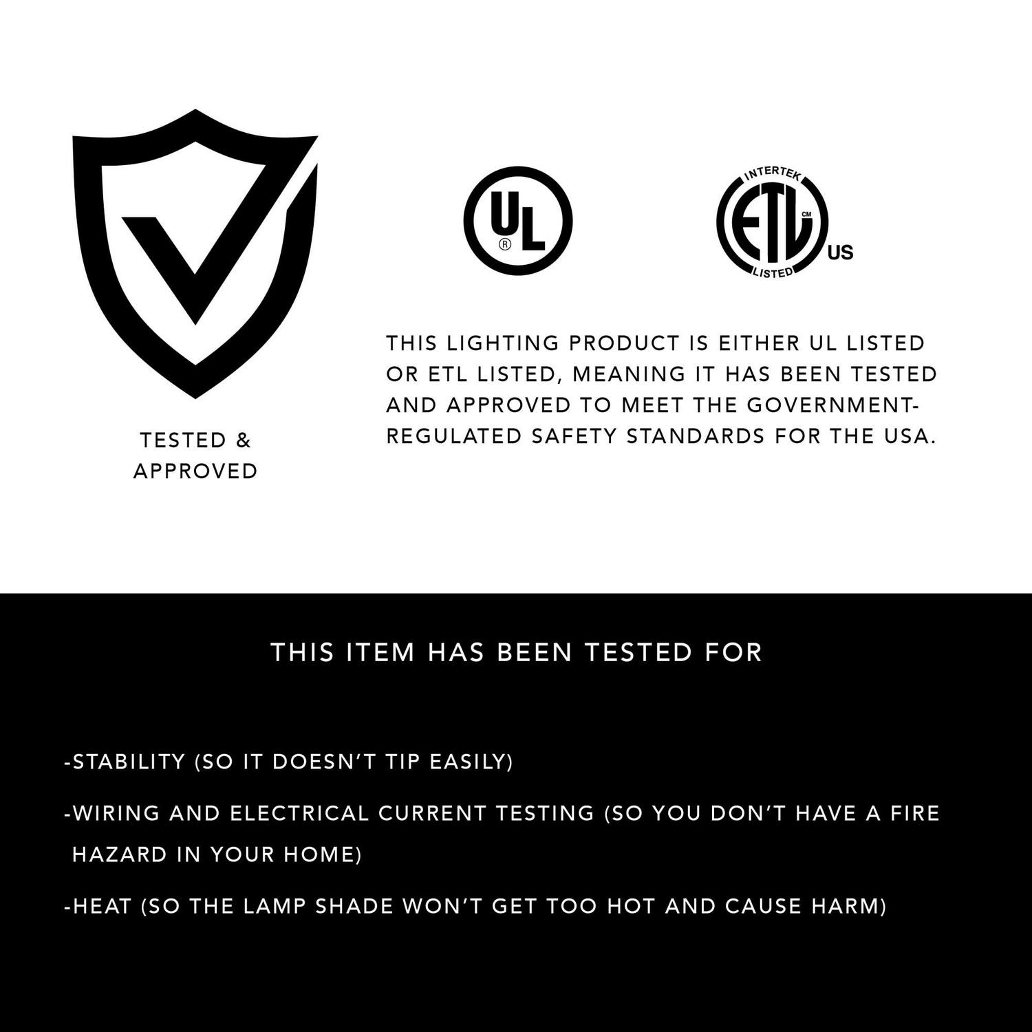 – Product Specifications: Matte black finish with antique brass accents, brown textured fabric shades: turn each on and off with a simple pull chain switch, two 10 in. frosted acrylic shelves: perfect for next to the sofa or bed, this lighting product is ETL listed, meaning that it has been tested and approved to meet the government-regulated safety standards for the USA.