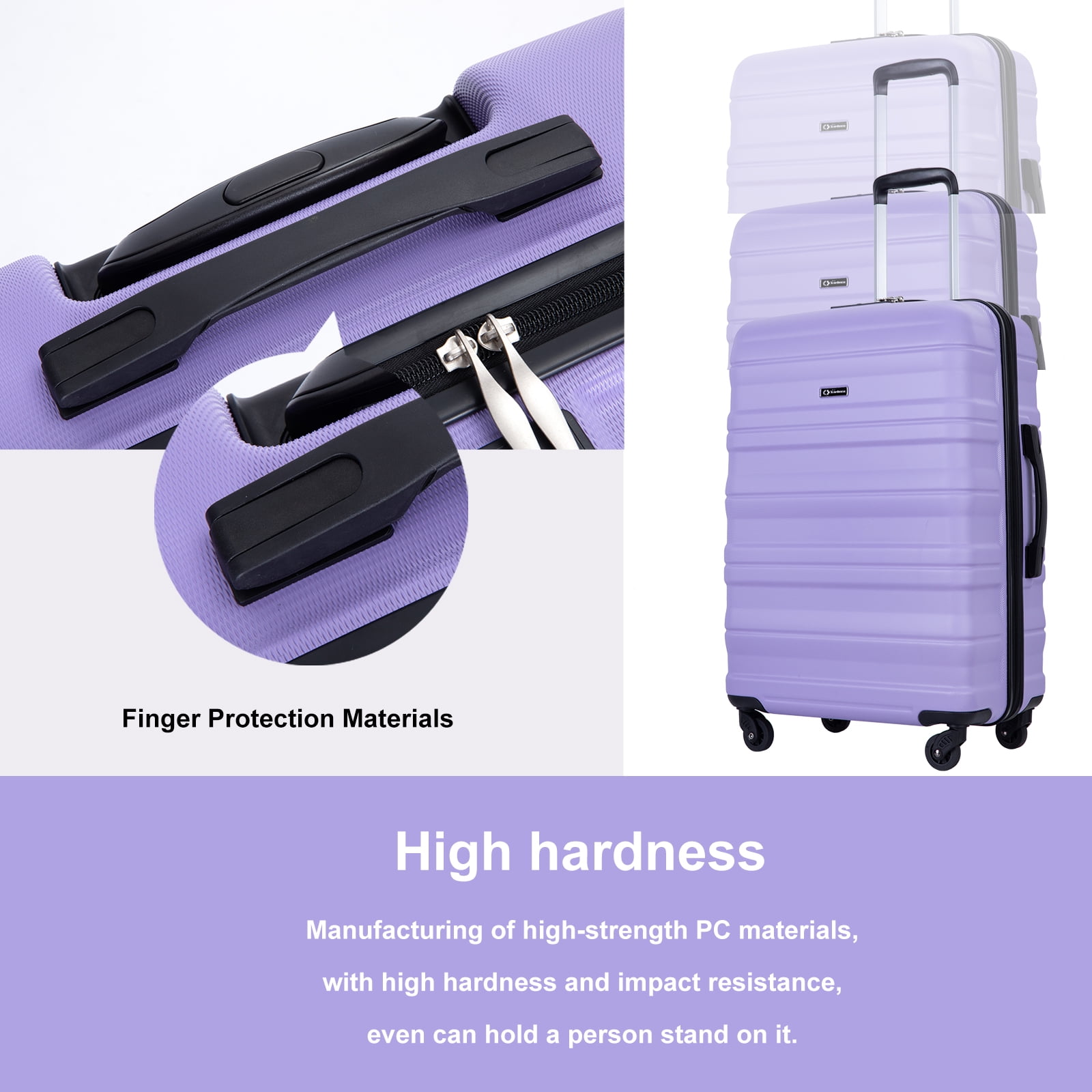 Tripcomp Hardside Luggage Set 3-Piece Set (21/25/29) Lightweight Suitcase 4-Wheeled Suitcase Set(Purple)