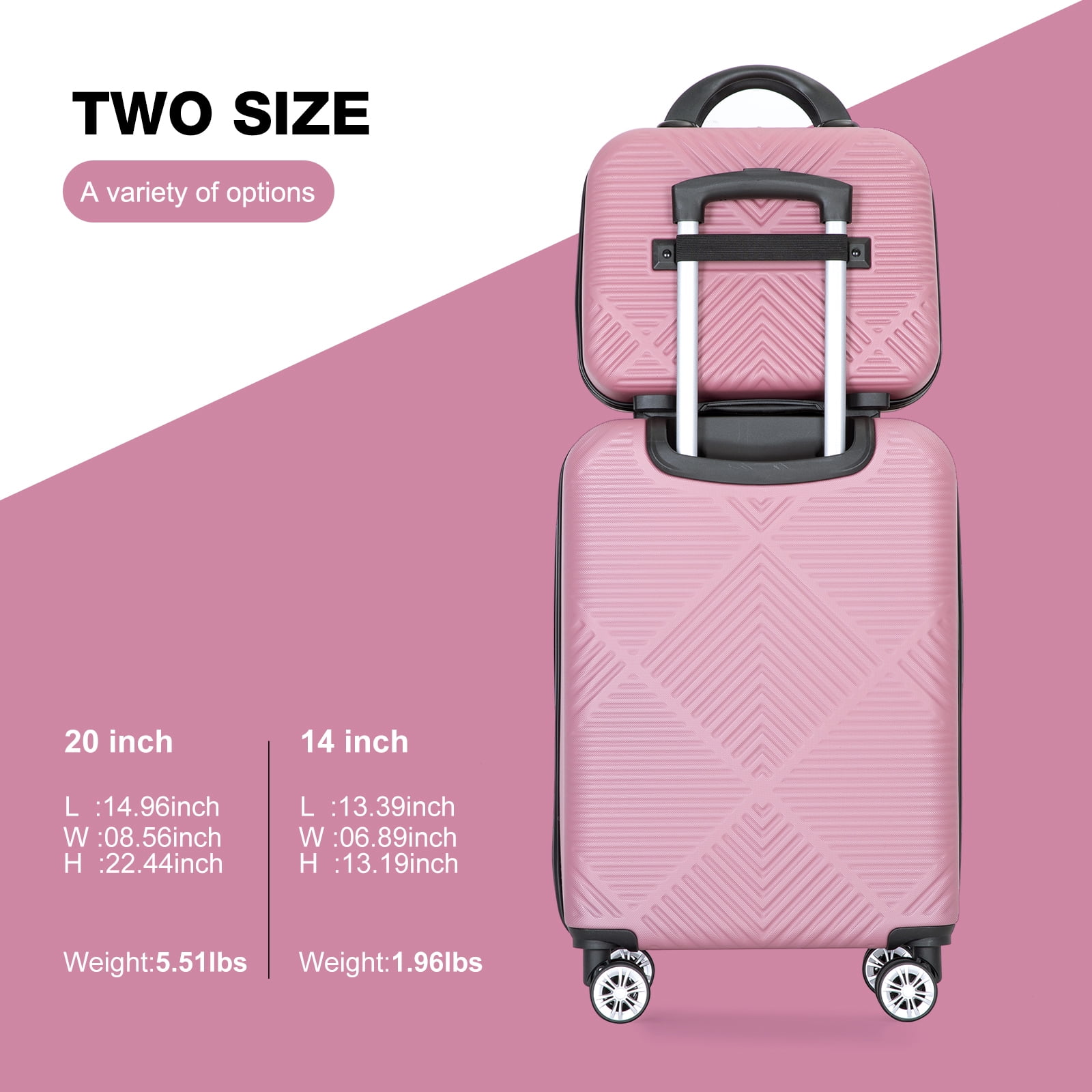 Tripcomp Luggage Sets 2 Piece Suitcase Set (14/20/)Hardside Suitcase with Spinner Wheels Lightweight Carry On Luggage(Pink)