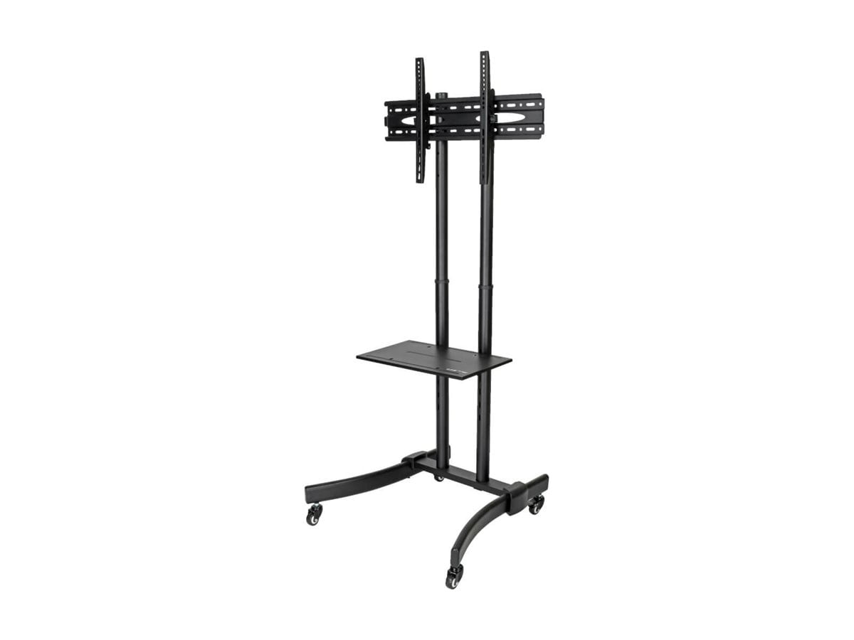 Move Your Flat-Panel Display and Components Wherever You Want Them The DMCS3770L Rolling TV Stand allows you to install a flat-panel television or monitor and its components (Blu-ray player, lptop, webcam, DVR), and then roll them safely and smoothly from room to room or from one corner of the room to another. The rolling TV stand is recommended for classrooms, lecture halls, offices, auditoriums, conference rooms and other settings where you need your audio/video equipment to be mobile. Supports up to 88 lbs (39.9 kgs) Designed to Match a Wide Variety of Applications The height-adjustable mobile TV floor stand fits most LCD, plasma and other flat-panel displays from 37 to 70 inches. Its durable aluminum and steel frame supports up to 88 lbs (39.9 kgs). You can raise or lower the height of the display from 52.5 to 67.5 inches above the floor, and adjust the display to an appropriate viewing angle from -10° to +10°. Rolls Easily from Place to Place on Sturdy Metal Casters The mobile TV cart with wheels rolls almost effortlessly to the proper viewing location and angle on sturdy four-inch swivel casters with rubber wheels that move smoothly in any direction through doorways and over thresholds. The rear casters lock to keep the stand securely in position while at rest. Equipment cables route through the stand’s telescoping poles to keep them organized and out of the way during transport. Convenient Shelf Holds Components in Place A height-adjustable shelf mounted below the display holds various audio/video components, such as a Blu-ray player, lptop, webcam, cable box, DVR or video game system. The shelf measures 11 x 19 inches and supports up to 22 lbs (9.9 kgs). Complies with VESA Standards The DMCS3770L conforms to VESA-compliant displays with any of the following standard mounting hole patterns: 200 x 200, 200 x 300, 200 x 400, 300 x 200, 300 x 300, 300 x 400, 400 x 200, 400 x 300, 400 x 400, 500 x 300, 500 x 400, 600 x 300 and 600 x 400. 5-Year Warranty and Environmentally Responsible Design The DMCS3770L comes with a 5-year warranty. It’s manufactured in compliance with strict RoHS specifications, reflecting Tripp Lite’s commitment to environmental responsibility. This mobile tv floor stand cart height-adjustable lcd 37-70″ displays – cart – for flat panel / Notebk / av equipment – aluminum, steel – black, silver – screen size: 37″-70″ is a great peripherals monitor accessories item at a reduced price you can’t miss. It is a brand new item that comes to you packed well and ships fast!