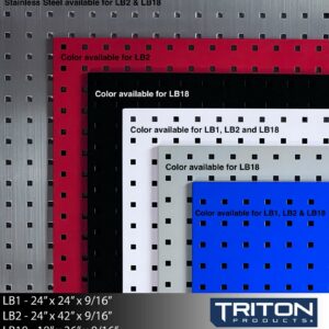 Triton ProductsA (2) 18 In. W x 36 In. H x 9/16 In. D 304 Stainless Steel Square Hole Pegboards with 32 pc. Stainless LocHook Assortment and (3) Plastic Hanging Bins